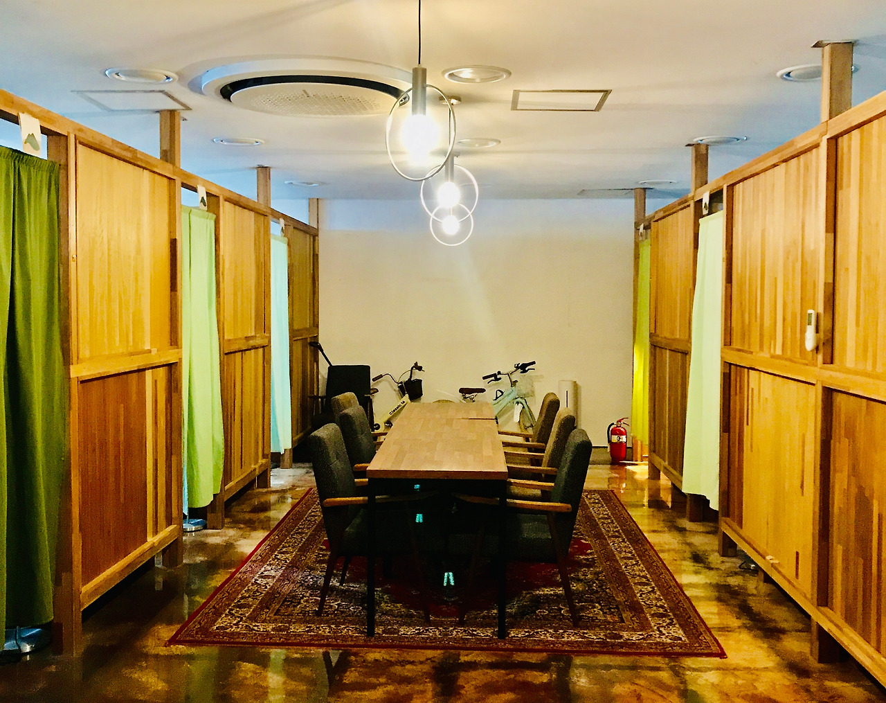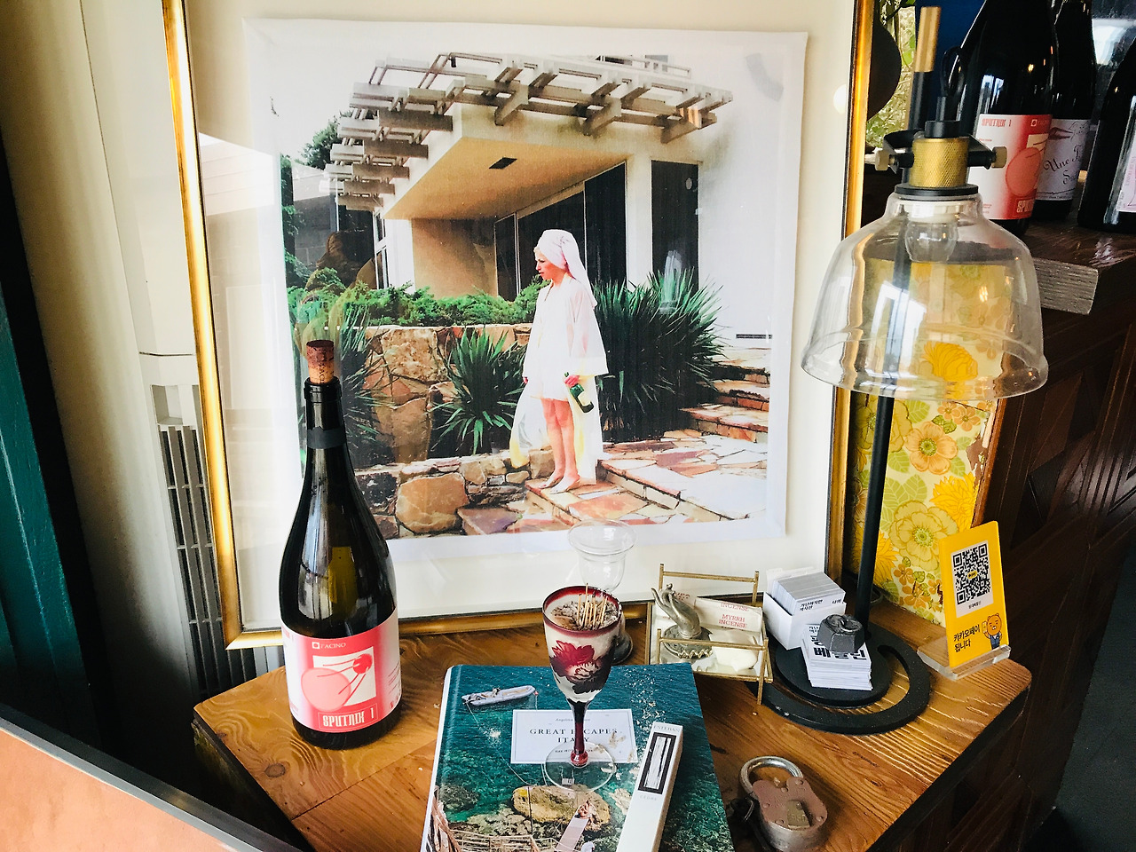 제가 유럽 여행을 많이 했는데요. 베를린에 갔을때 바나 펍같은데서 자유롭게 자기만의 시간을 갖는 모습들이 좋아보이더라구요. 제 숙소에도 와인 한 잔씩 하면서 자기만의 시간을 갖기도 하고 같이 묵게 된 사람들과 가볍게 이야기도 하는 공간이 있었으면 좋겠다 해서 숙소 옆 건물에 베를린의 한 바에 온듯한 느낌이 드는 공간을 만들었어요. 숙소에 오신 분들이라면 누구나 편안하게 와인한 잔 하며 자기만의 시간을 보낼 수 있는 곳이죠