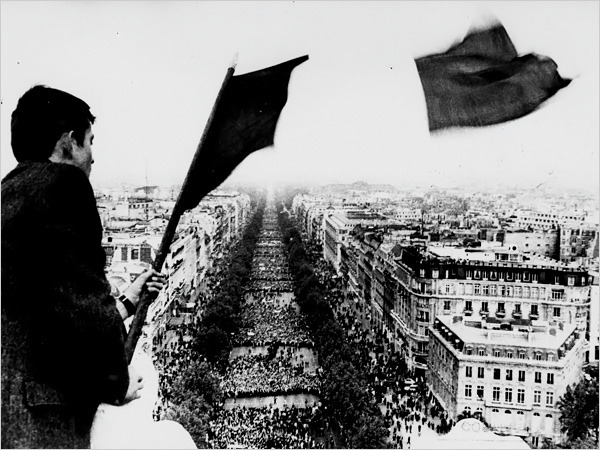 그러므로 사건들은 이제부터 대규모로 변합니다. 5월 13일 학생-교원-노동자 연대 행진이 레퓌블리크에서 당페르까지 진행되었습니다. 노동자들은 이미 총파업에 돌입한 상태였고, 시위 규모는 시간이 갈수록 늘어납니다. 행렬의 선두에는 제스마르, 소바조, 콩방디 등 학생지도부가 있었지요. 그런데 프랑스노동총동맹(CGT)은 이들이 마음에 들지 않았지요. 그도 그럴 것이 이들 노회한 노동자들의 눈에 학생들은 그저 새파랗게 어린것들이고, 너무 과격했기 때문입니다.