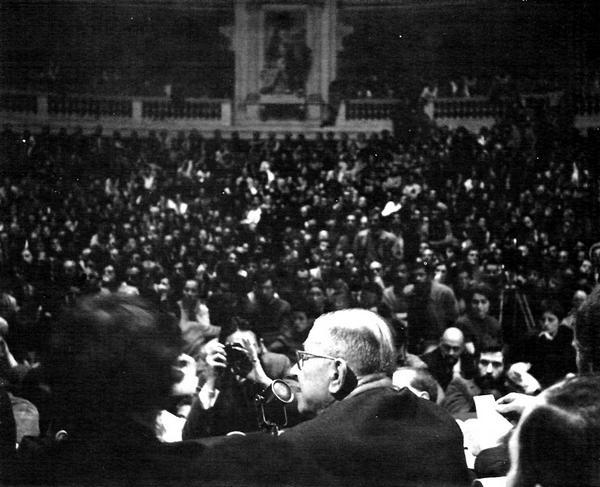 이날, 마찬가지로 소르본이 점거됩니다. 그리고 노동자 지구인 낭트는 그 이전부터 이미 노동자들의 축제가 벌어지고 있었고요. 소르본의 대강의실에서는 매일 혁명의 진로와 권력의 향배에 대해 토론이 이루어졌습니다. 5월 20일, 레지스탕스였고, 프랑스 진보의 표상인 사르트르가 소르본에 와서 학생들과 밤새 격론을 벌였습니다.