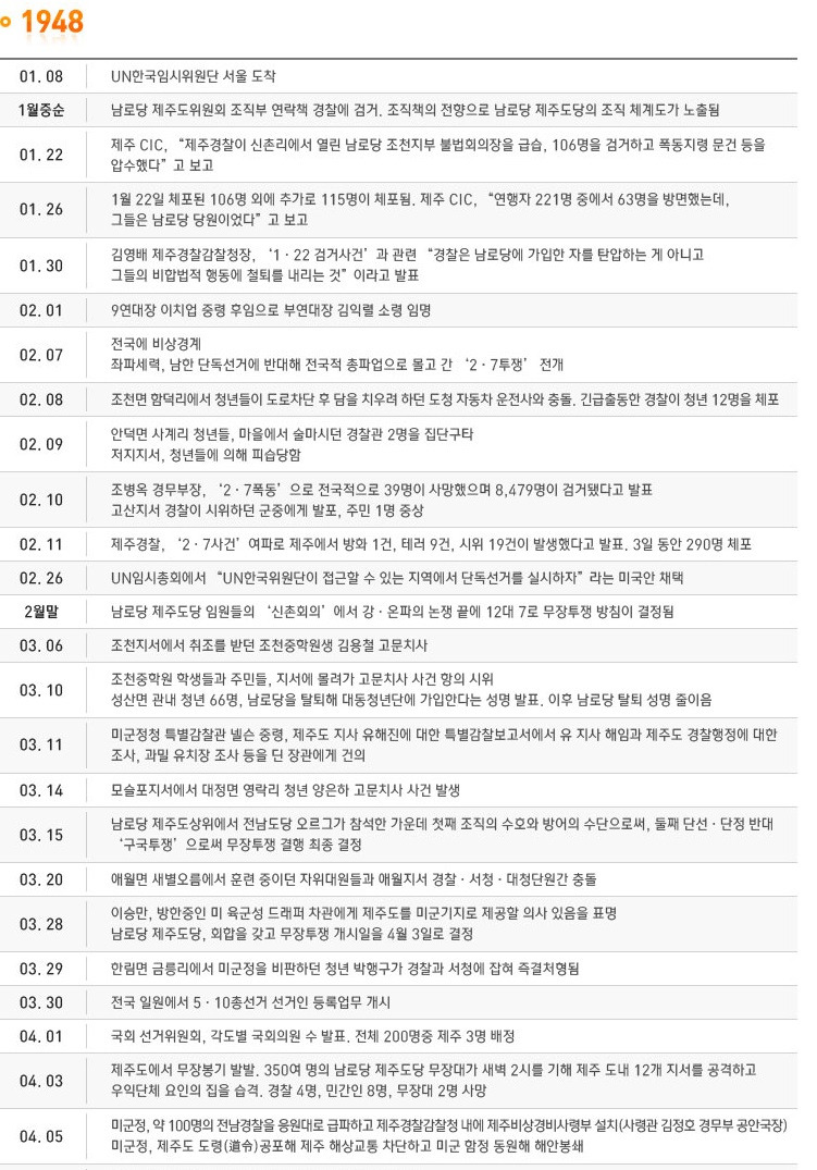 이런 자료들 외에 <4.3 평화재단>에 들어가면 더 많은 자료들을 보실 수 있습니다. 이 사이트에 게재된 '4.3 사건 일지' 중 일부를 보도록 하지요. 전체 한글 파일은 제가 파일 첨부해 놓겠습니다.