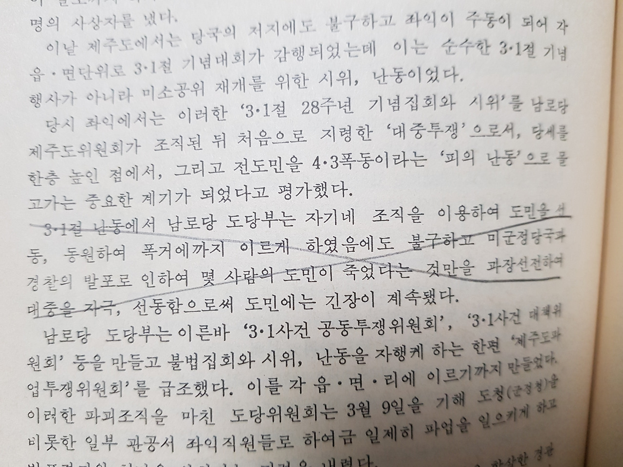 확실히 읽으면서 제가 화가 많이 났었던 것 같습니다. 예전이나 지금이나 아무리 입장이 다른 책이라 해도 저렇게 난도질(?)을 하지는 않거든요. 그런데, 김남식의 이 책은 다소 묘한 구석이 있어요. 왜냐하면 제주 4.3을 저렇게 묘사하면서도, 이상하게도 논조가 지배사관에 완전히 동화되어 있지는 않다는 느낌이 들거든요. 뭔가 할 말을 숨기고 있다는 것이지요. 가만히 생각해 보면 이 책이 처음 나온 때가 1984년, 전두환이가 집권할 때에요. 그래서 그런 것일까요? 아무튼 이 책들에 대해서는 더 이상 논하지 않기로 하겠습니다.