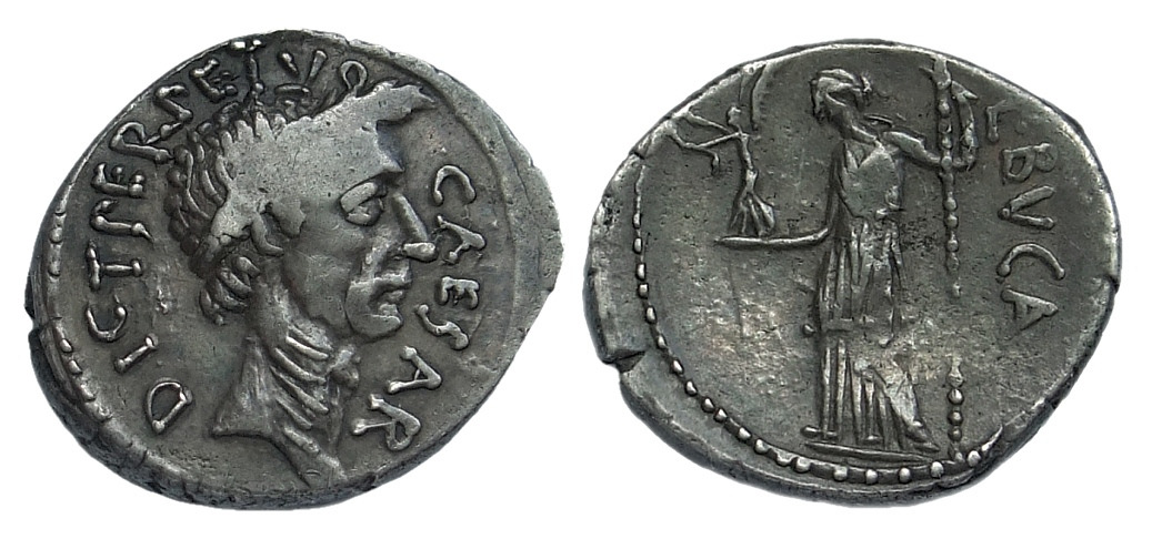 사실상 카토의 이 말이 당시 로마 귀족과 민중들의 통념이라고 해야 합니다. 그래서 카이사르는 매우 조심스러울 수밖에 없었지요. 카이사르의 해결안은 이름만 뺀 왕의 자격으로 통치하는 것이었습니다. 그는 기원전 48년에 자신을 독재관으로 임명하도록 원로원과 민회를 배후에서 조종했습니다. 기원전 44년에 이르러서는 전통적으로 임시직인 이 관직의 임기를 없애고, 자신의 조상을 새긴 동전이 보여주듯이, '상시 독재관 dictator perpetuo'이 되었습니다. 하지만 그는 “나는 카이사르이지 왕이 아닙니다"라고 계속 말하고 다녔지요. 그러나 이런 명목상의 구분은 무의미했습니다. 겉으로는 정부의 절차가 예전과 다름없이 돌아가는 것 같았지만, 카이사르는 임기 제한이 없는 독재관으로서 친히 정부를 운영했습니다. 카이사르가 장기적으로 어떤 정부를 구상했는지는 불분명합니다. 하지만 이후 행보를 보면 그의 숨은 야심이 무엇이었는지 확실히 알게 되지요.