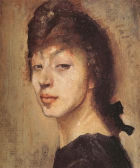 뭐랄까. 여느 예술가들과 마찬가지로 그녀는 자의식이 강한 여인이었던 것 같습니다. 강한 자의식은 곧 외로움, 고독으로 이어지지요. 유난히 자화상이 많은 것이 이를 드러냅니다. 이 그림은 초기 자화상입니다. 붓터치와 표정으로 내면을 드러내는 화풍이 야수파와 인상파에 가깝다는 생각이 들었습니다. 하긴 인상파 화풍은 워낙 많은 후계자들을 거느리고 있지요. 마리도 예외는 아닌 것으로 보입니다. 하지만 그녀의 초기 자화상에서는 인상파 화가들이 즐겨 묘파한 빛의 어우러짐보다는 콘트라스트(명암)의 강약이 더 두드러집니다. 아마도 이런 양식은 야수파의 영향일 것으로 추측됩니다. 검은 머리와 환한 볼살, 그리고 그림을 그리는 자기 자신을 뚫어지듯 바라보는 까만 눈동자는 명암의 대조만으로 내면의 고독을 드러내고 있지요. 그리고 이 그림에서부터 쟂빛과 분홍의 묘한 대조가 보입니다. 까만 눈동자 밑의 회색 그림자를 보세요. 그 아래 굵은 선으로 흐르는 분홍의 입술이 그림 전체에서 강한 질감을 형성하고 있습니다.