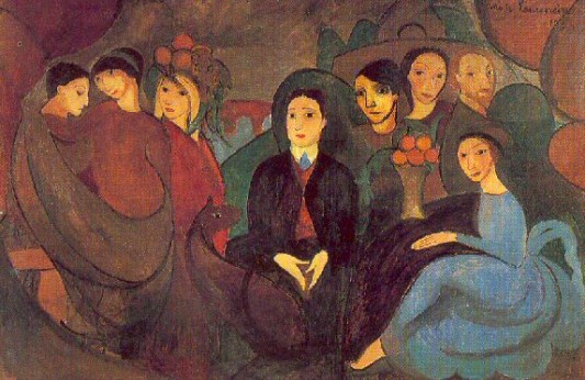 그런데 과연 이 분홍의 밝디 밝은 태양이 마리의 본 모습일까요? 저는 그렇게 생각하지 않습니다. 그녀가 이후 코코 샤넬과 같은 당대의 유명인사들과 함께 어울리면서 스포트라이트를 받으며 유명해졌지만, 그녀의 눈동자는 여전히 검은 색이거나 어둠을 겨우 뚫고 올라오는 푸른색이었기 때문이지요. 그녀는 여전히 우울했고, 사랑을 갈구했으며, 그림들에서처럼 결코 웃지 않았습니다. 왜 그랬을까요? 다음 작품들을 보시죠.