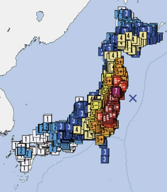 나중에 뉴스를 보고 알게 된 것이지만, 당시 내가 살던 치바현(千葉県) 북서부에 위치한 가시와시(柏市 *가시와 레이솔의 그 '가시와'가 맞다)의 진도는 5약. 참고로 일본에서 독자적으로 정해 사용하는 진도는 약한 쪽부터 1, 2, 3, 4로 시작해 5부터는 5약, 5강, 6약, 6강으로 나누어 표기하며 가장 강력한 지진은 진도 7로 정의한다. 동일본 대지진 당시 일본에서 가장 높은 진도를 기록했던 동북 지방(도호쿠 지방)은 진도가 7, 매그니튜드는 9.0으로 관측되었다(우리나라 지진 기사에서 표기되는 '규모〇〇'는 일본에서 쓰이는 '진도'가 아니라 통상적으로 매그니튜드를 의미한다).
