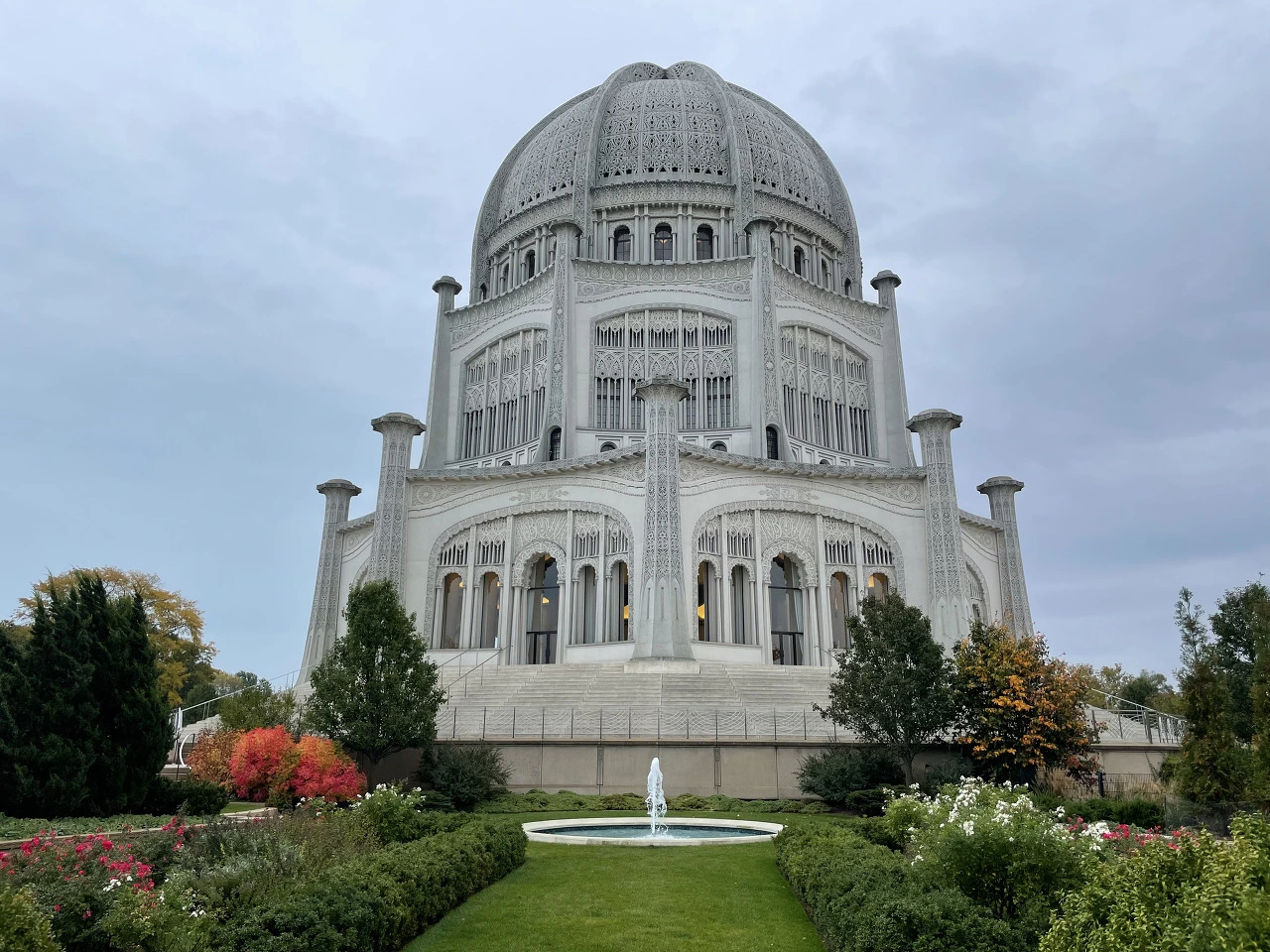 또 강변을 따라 아래를 쭉 걷다 신기한 건물이 눈에 들어왔다. 회색이고, 화려하고, 윗부분이 돔 형태인 건축물의 정체는 '바하이'라는 종교의 예배당이란다. 전 세계에 여덟 개밖에 없는 예배당 중 하나라길래 특별하게 느껴졌다. 예배당의 디자인은 조금씩 다른데 아홉 개의 각으로 벽이 세워지고 위에 돔 형태의 지붕을 얹는 건 공통 양식이다. 안엔 벽부터 천장까지 이어진 화려한 프레임으로 꾸며져 있었다. 천장에는 아랍어로 기도문이 쓰여 있었다.