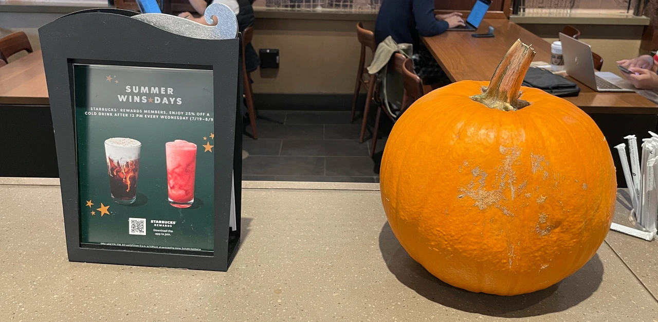오전 시간을 여유롭게 즐기고 싶어 그 길로 스타벅스에 갔다. 주문하려는데 카운터 맞은편에 커다란 호박이 놓여 있었다. 슥슥 만지고 통통 두드려보니 진짜 호박 맞네. 희한하게 핼러윈을 기념하는 이곳. '브루드 커피(Brewed Coffee)'에 집에서 챙겨 온 인썸니아(Insomnia) 쿠키를 먹었다. 노트북을 펴놓고 지나온 일정도 정리하고 블로그도 썼다. 일하거나 공부하는 사람들 사이에서 노닥거리는 거, 너무 재밌다!