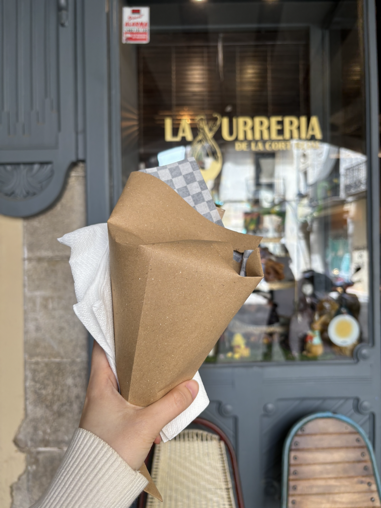 빵순이에게 스페인은 추로스의 나라다. 근처에 오후 1시 반까지만 하는 추로스 가게가 있길래 서둘러 찾아갔다. 'La Xurreria De La Cort Reial'이란 가게다. 할아버지 사장님께 손짓 발짓으로 추로스 두 개를 주문했다. 플레인 하나, 초코 하나. 플레인은 꽈배기처럼 쫀득한 식감이고, 초코는 코팅 때문인지 살짝 바삭했다. 튀긴 밀가루이니 어찌 맛이 없겠냐마는, 더 맛있는 곳을 찾아야겠어.
