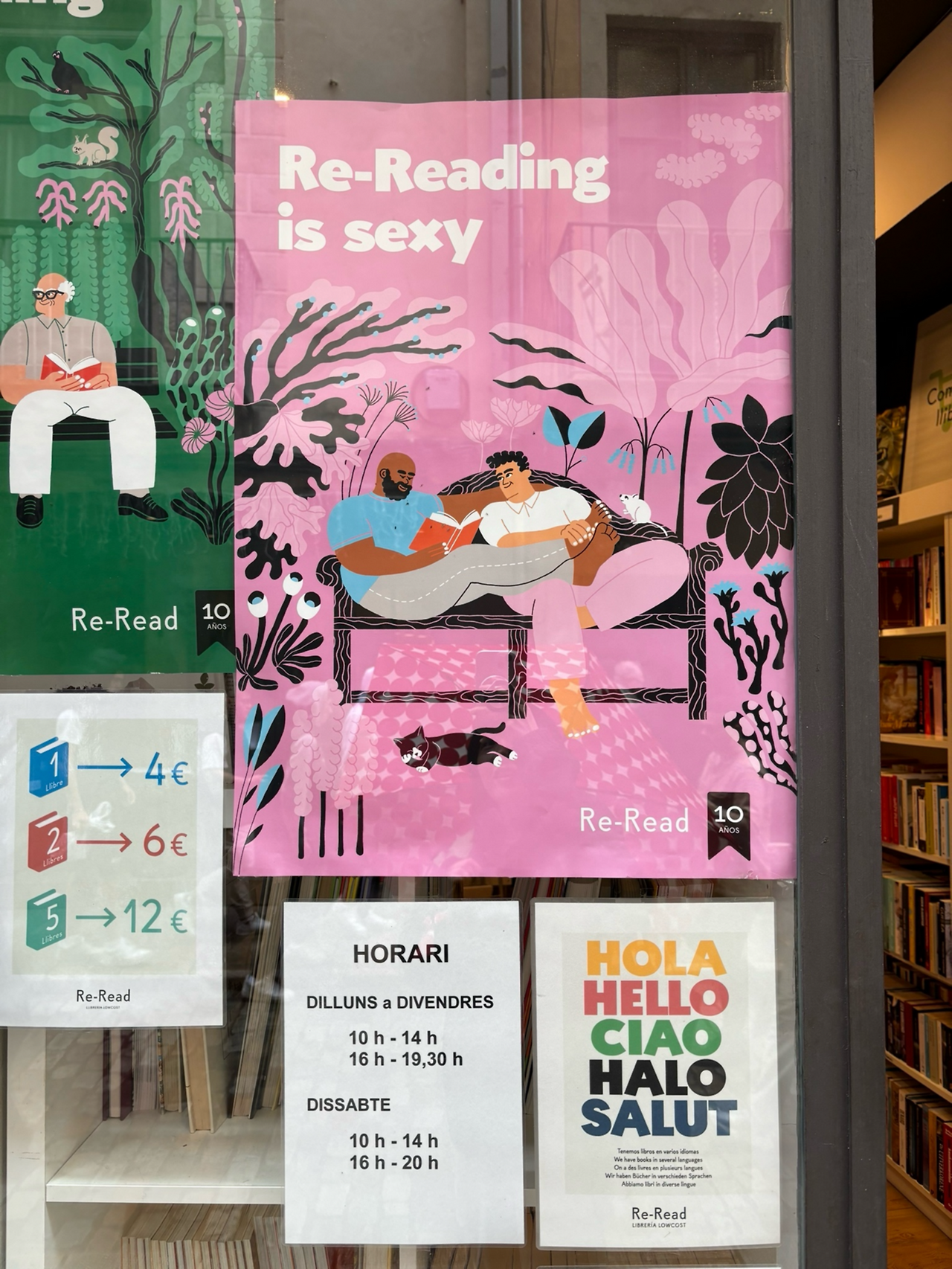 밥도 먹었겠다, 군것질도 했겠다, 기분 좋게 골목을 따라 즐비한 가게들을 구경했다. 그러다 'Re-Read'라는 중고 책방을 발견했는데, 홍보 포스터 문구(Re-Reading is sexy)가 인상적이었다. 섹시 프레임을 중고 독서에 씌울 수 있다니... 업사이클링에 착함이 아닌 섹시함을 더하는 게 신선하게 느껴졌다.