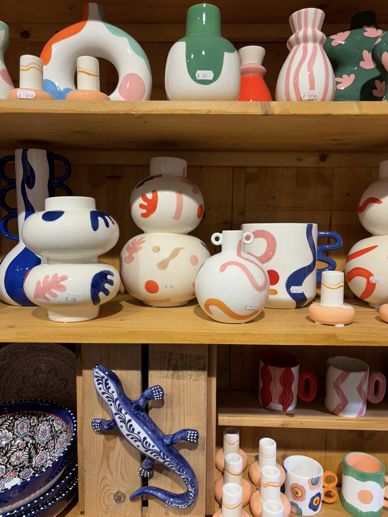 성당에서 나와 반대편 골목의 가게들을 구경했다. 친구가 아침 산책길에 들렀다는 초콜릿 가게를 발견했다. 팔뚝만 한 초콜릿바가 시그니처인듯했다. 초콜릿 전문이지만, 누가나 캐러멜도 맛이 다양했다. 그 옆엔 그릇 가게가 있었는데, 전형적이지 않은 무늬와 색 조합이 구경하는 재미가 쏠쏠했다. 여행 초반이라 운반에 조심해야 하는 주방용품은 살 수 없어 아쉬웠다.