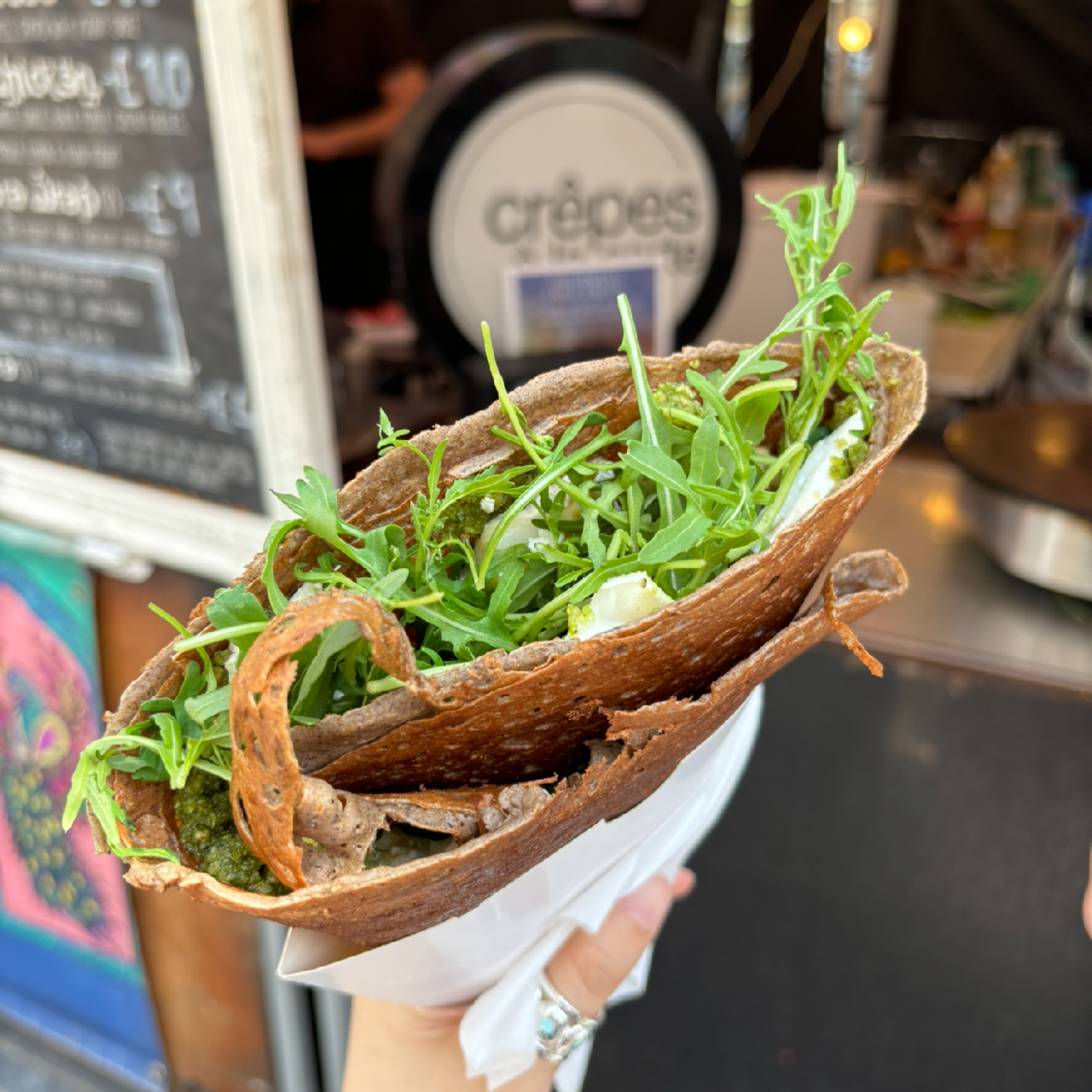 음식은 물론, 디저트에 커피와 칵테일 등의 음료까지 푸드트럭이 줄지어 있었다. 한참을 구경하다 염소치즈 크레페와 철판 닭구이를 골랐다.