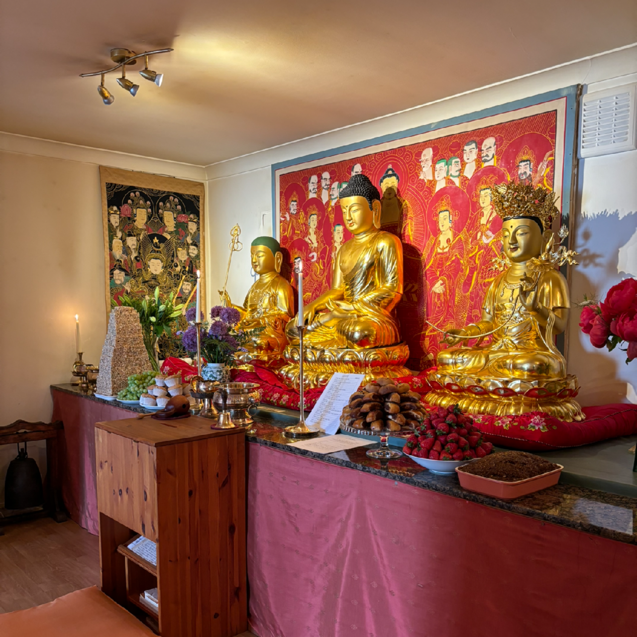 절을 많이 가본 건 아니지만, 주택처럼 생긴 곳은 처음이라 마냥 신기했다. 근데 안에 들어가니 또 익숙한 향과 상차림이라 기분이 묘했다. 한인 교회는 많이 들어봤어도, 한인 절은 또 처음이라 마냥 재밌었다.