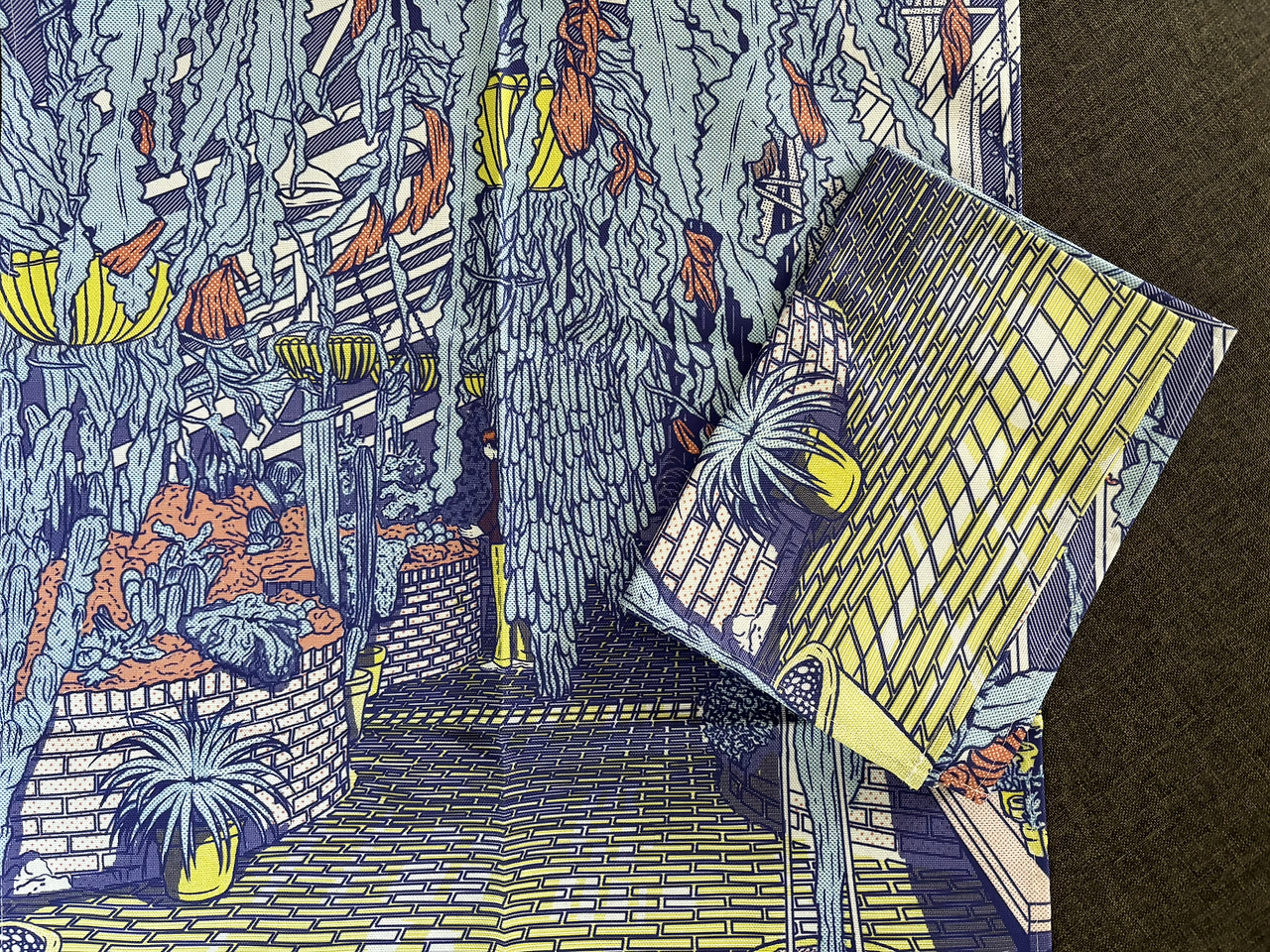 기념품샵을 돌아보다 리소그래피 스타일의 일러스트 코너를 발견했다. 온실 풍경을 담은 소품 중 티타월이 제일 눈에 들어왔다. 친구도 마음에 들어 했고, 서로 선물한 셈 치자고 하면서 하나씩 샀다.