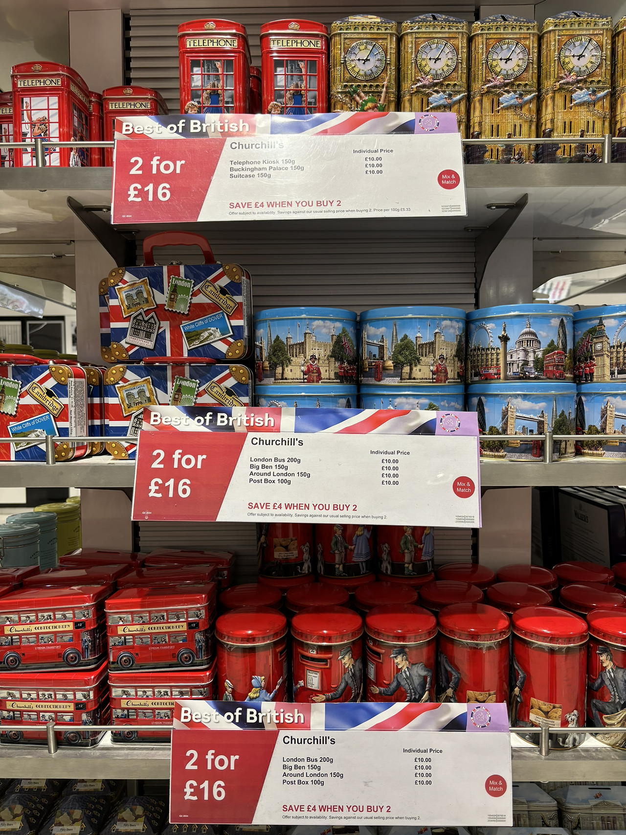 가볍게 면세점 구경이나 해볼까. 이번에 포트넘 앤 메이슨 가게를 따로 안 갔는데, 면세점에 대표 차와 비스킷들이 꽤 많다. 감자칩으로 유명한 워커스 제품들도 두세 개씩 묶어서 팔고 있다. 차나 간식류는 면세점 여기저기에 가게가 많아서, 미리 못 사도 공항에서 해결할 수 있다.