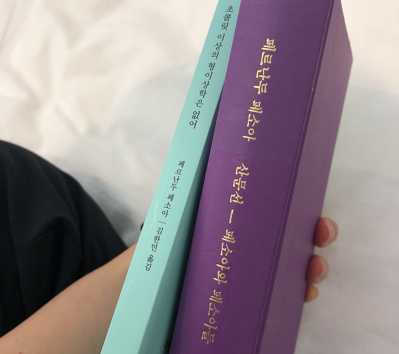 여행할 때는 반드시 책을 챙긴다. 이번에는 포르투갈의 대표 시인 페르난두 페소아의 산문집 <페소아와 페소아들>과 시집 <초콜릿 이상의 형이상학은 없어>를 한 권씩 들고 왔다.