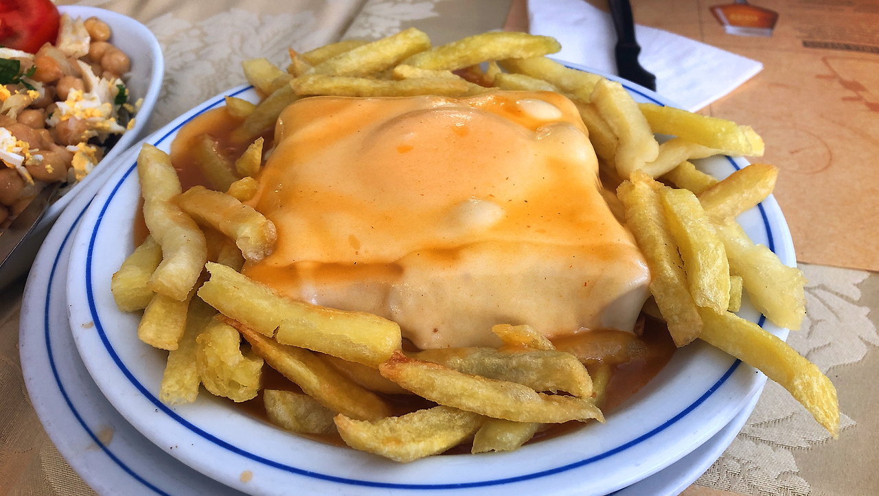 : 칼로리 폭탄 음식을 먹으면 실시간으로 혈관이 막혀오는 것 같은 불안감을 느끼며 동맥경화나 뇌경색이 오지 않을까 걱정한다. 포르투는 무엇보다 프란세지냐(Francesinha)라는, 햄과 치즈를 팍팍 넣어 '내장파괴버거'라는 별칭을 가진 샌드위치가 유명한데... 이런 류의 음식은 아무리 맛이 있어도 좋아하기 힘들다.