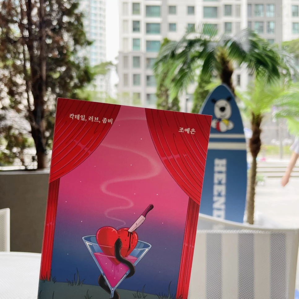 지난주, 원티드에서 진행하는 '북러버 모임'에 갔다가 책들은 잔뜩 추천받아 왔습니다. 그중 특이한 제목과 표지에 이끌려 가장 먼저 집어온 책이 바로 <칵테일, 러브, 좀비>(작가: 조예은)입니다.
