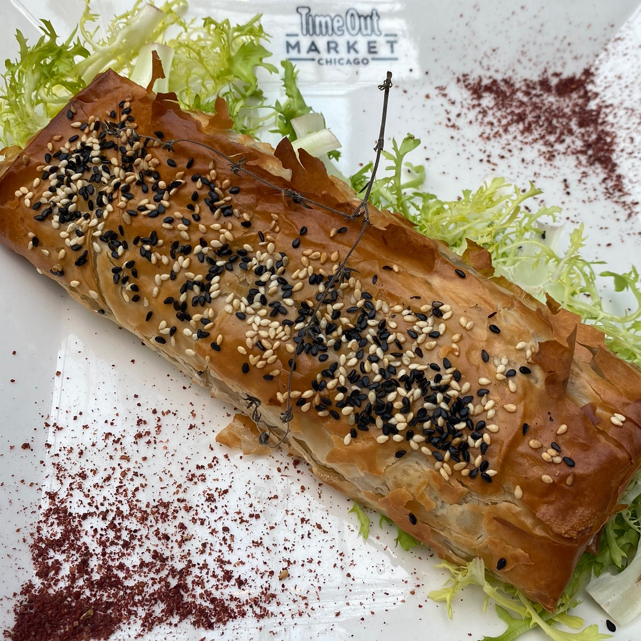 샐러드엔 루꼴라, 토마토, 올리브, 페타치즈가 듬뿍 들어 있었다. 며칠간 밀가루 음식을 많이 먹었더니 채소 생각이 간절했는데, 만족스러운 양이었다. 파이는 겉은 바삭한 페이스트리에 속은 시금치와 페타치즈로 가득 차 있었다. 은근한 허브향도 나고 맛도 좋았다.