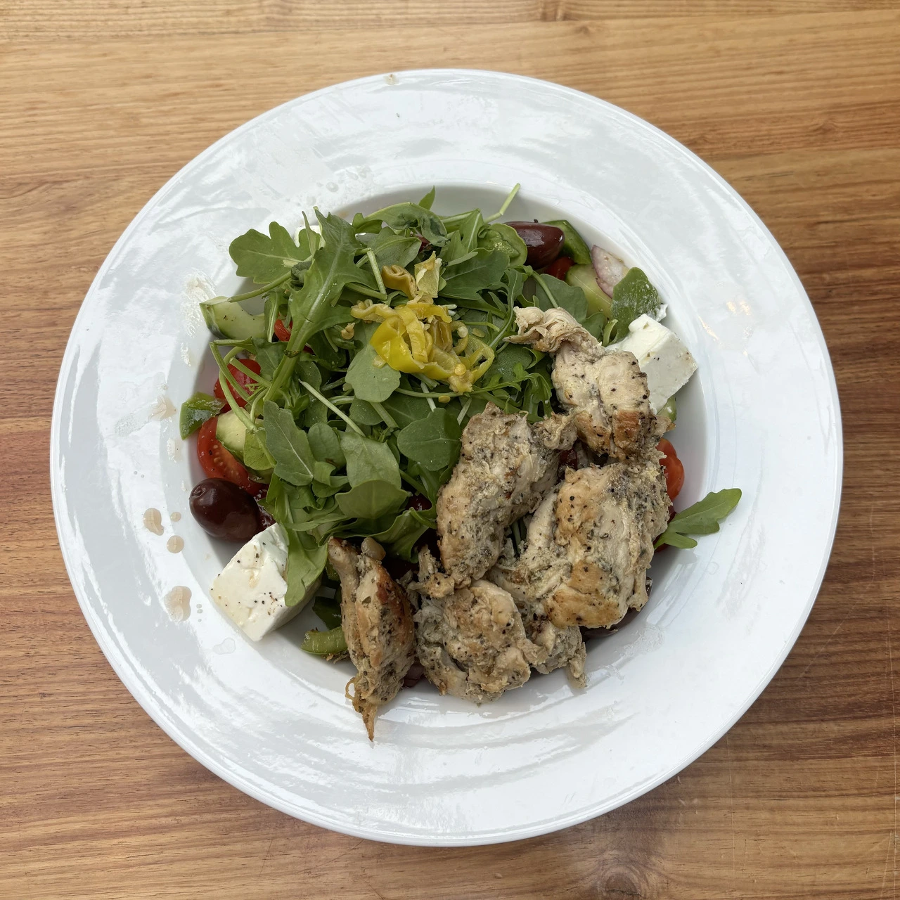 한참을 고민하다 그리스 음식을 주문했다. 나는 그리스식 샐러드에 닭고기를 추가했고, 친구는 시금치 치즈 파이를 골랐다. 세금에 팁까지 포함하니 음식당 20달러가 훌쩍 넘었다. 마켓에서 둘이 5만 원 쓰기는 또 처음이네.
