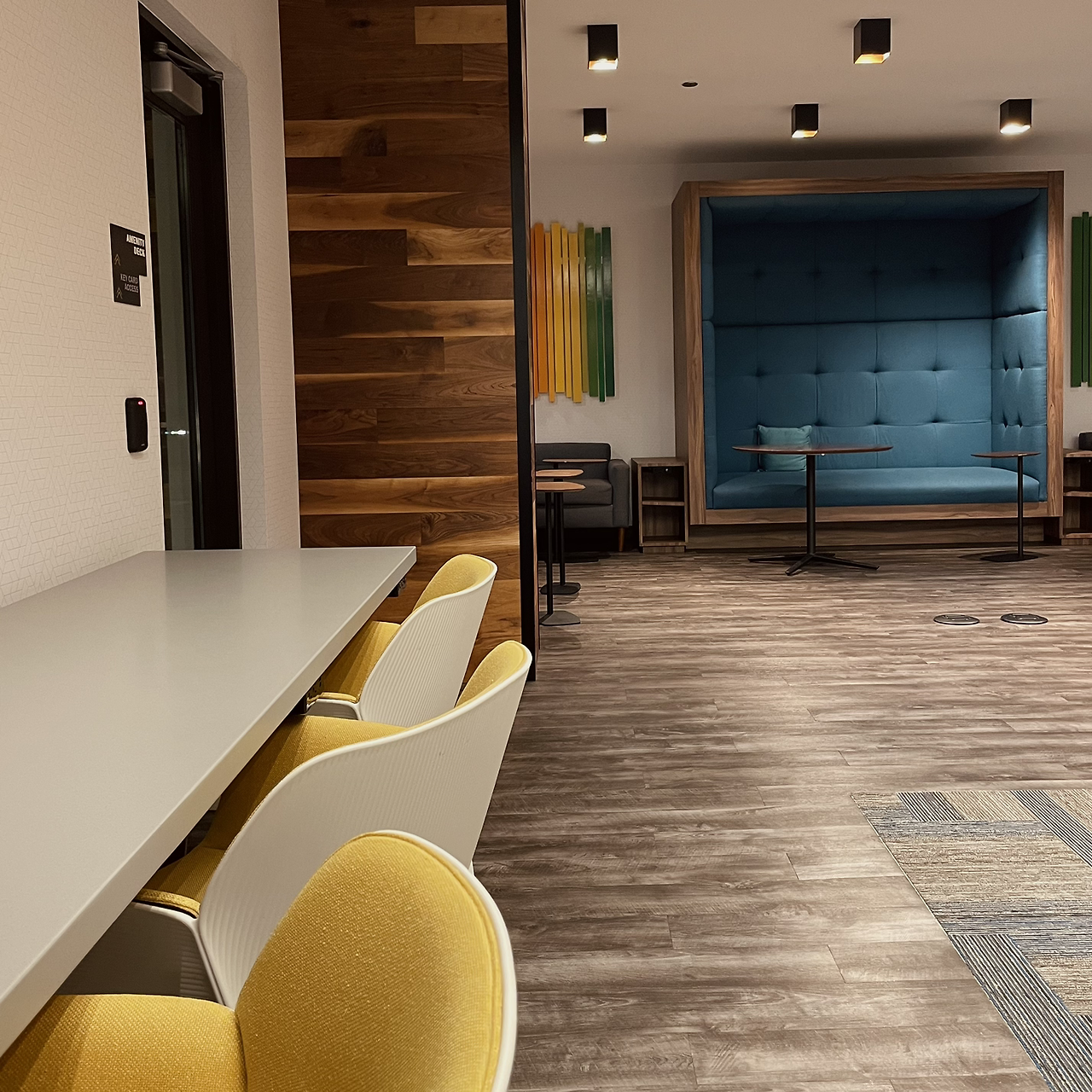 오후 다섯 시 반, 백팩에 노트북과 스케줄러, 이어폰, 충전기 선, 안경 등을 챙겼다. 근무 장소는 친구집과 같은 건물 2층에 있는 코워킹 스페이스였다. 이 건물 입주자의 대부분이 대학생이거나 대학원생인지라 시험기간에만 붐비는 곳이란다. 정말 나뿐이었다. 인테리어 디자인은 한국의 공유오피스 라운지와 비슷했다. 벽을 따라 미팅룸도 두 개 마련되어 있었다.