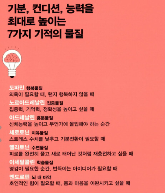 사람의 호르몬에는 여러 종류가 있다. '당신의 뇌는 최적화를 원한다'라는 책에 보면 사람의 호르몬에 대해서 나온다. 뇌가 시키는 대로, 본능에 따라 살면 어떠한 일이 일어날까? 사람에게는 7가지 호르몬 물질이 있다.