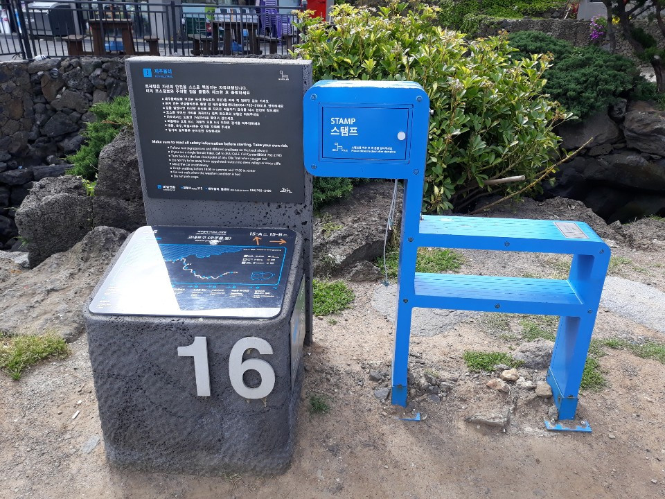 올레꾼들 없이 조용하던 다른 코스와는 달리 이른 아침이지만 16코스 시작점에서는 여러 명의 올레꾼들이 스탬프를 찍는걸 보아 고독한 나만의 올레길이 될 거 같지는 않다.