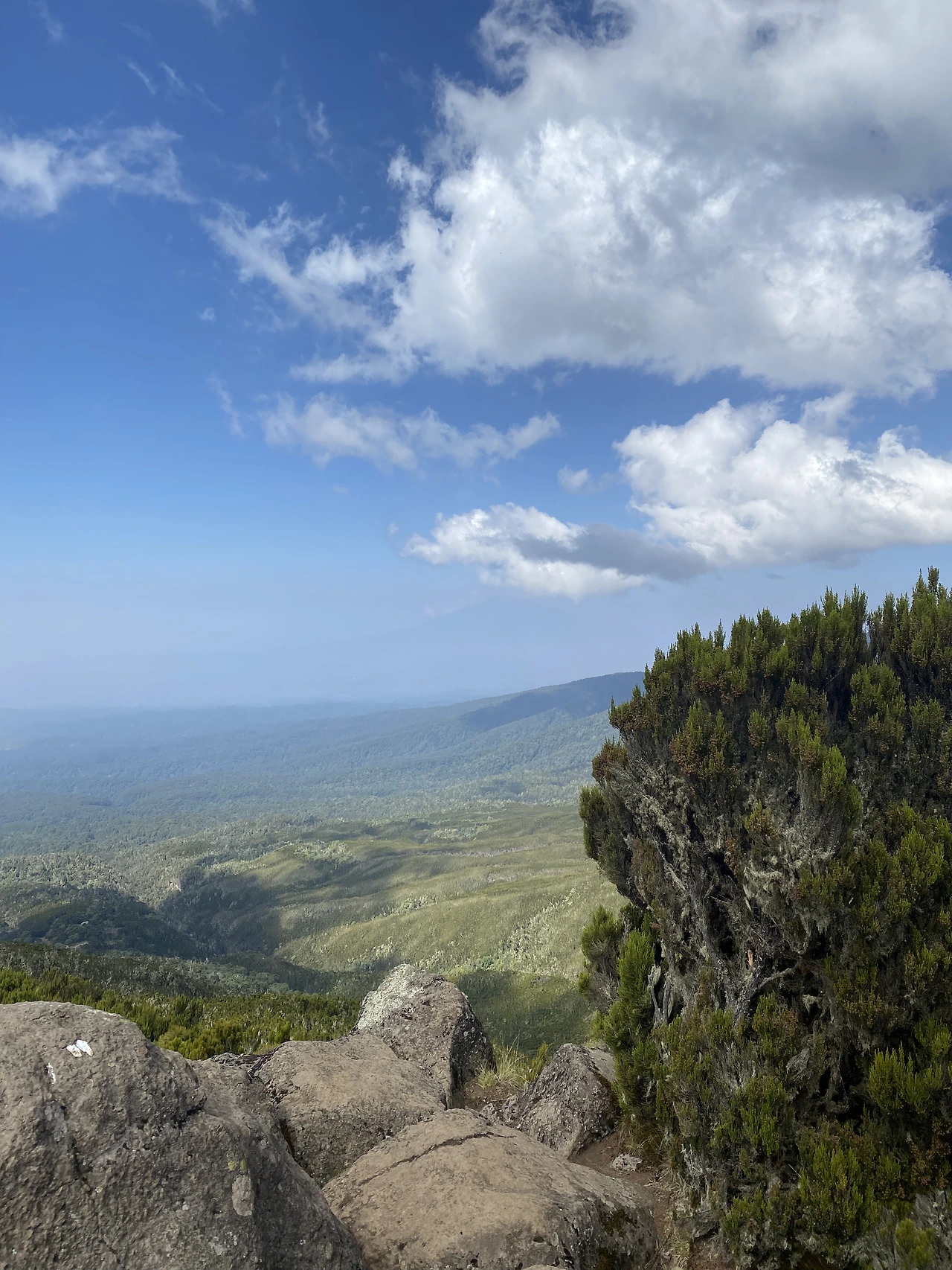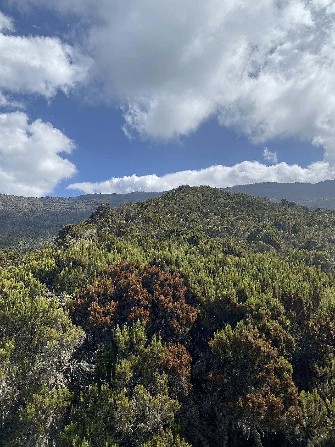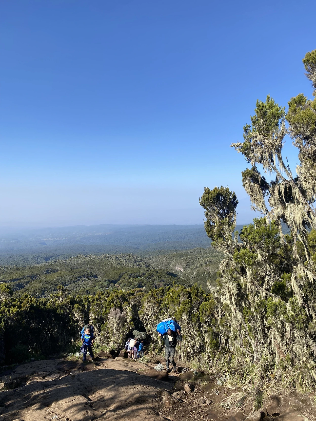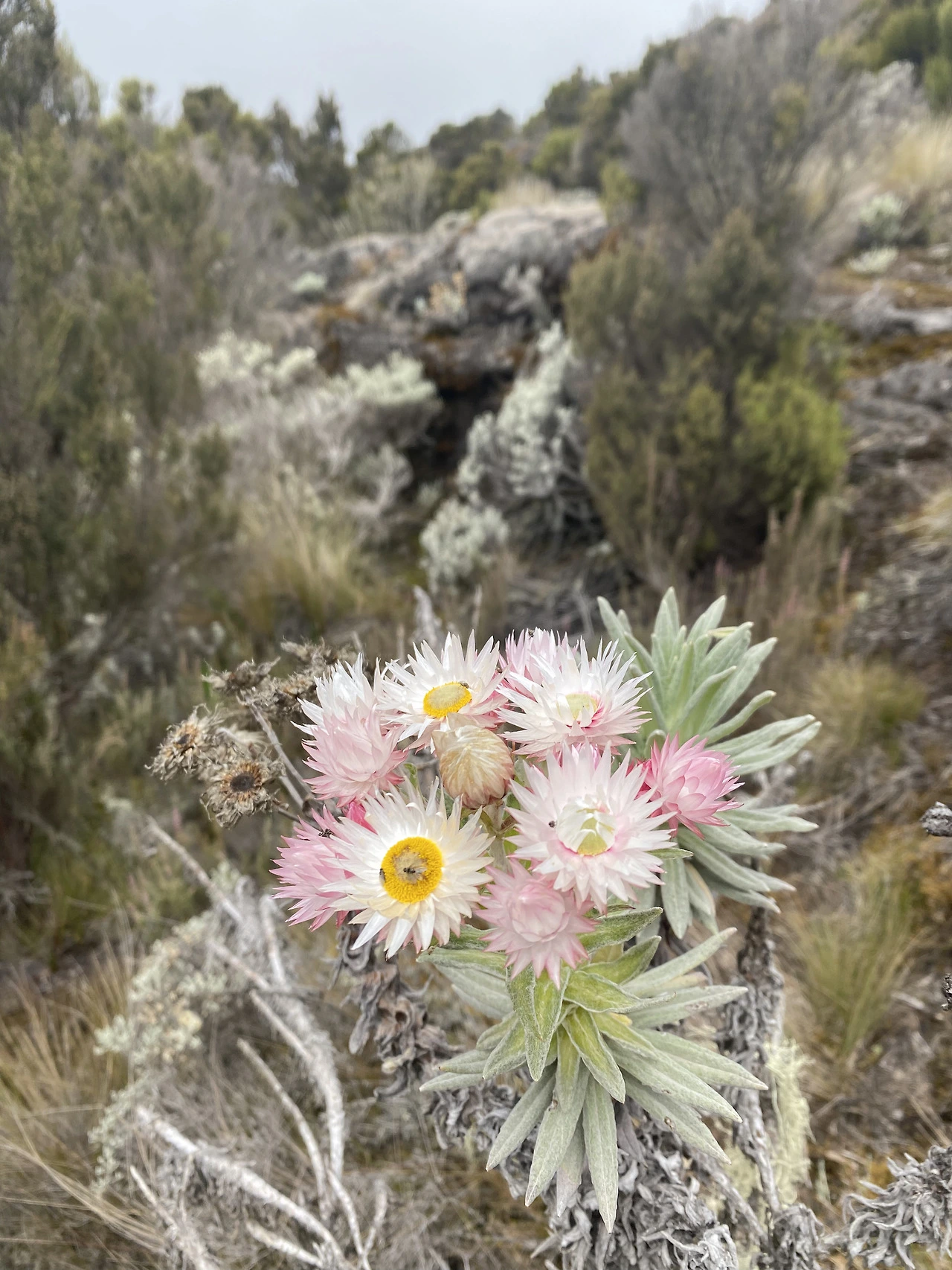 혼자다 보니 가이드 데이빗과 오손도손 정답게 올라간다. 킬리만자로는 고도에 따라 지대가 달라지는데 데이빗이 우리가 지나가는 지대마다 잘 설명해 준다. 여기가 어디인지 그리고 그곳에서 무슨 식물이 자라는지 등등… 내가 꽃과 나무에 관심을 보이니 더 설명을 해주려고 하는 거 같다.