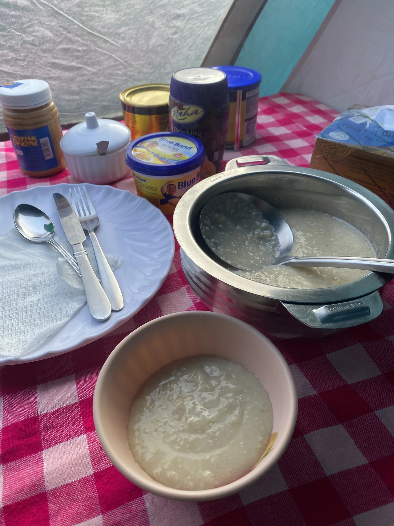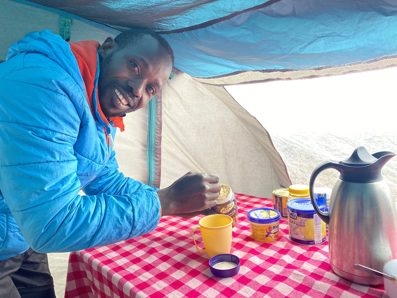 텐트에서 자는 건 오들오들 추웠다. 한 시간에 한 번씩 깬 거 같다. 아침이 밝아왔고 아담이 뜨거운 물을 준비해 줬고, 조금 있다 아침식사가 들어왔다. 뜨거운 물을 마시고 뜨거운 수프를 먹으니 속이 따뜻해지면서 온몸이 녹았다.