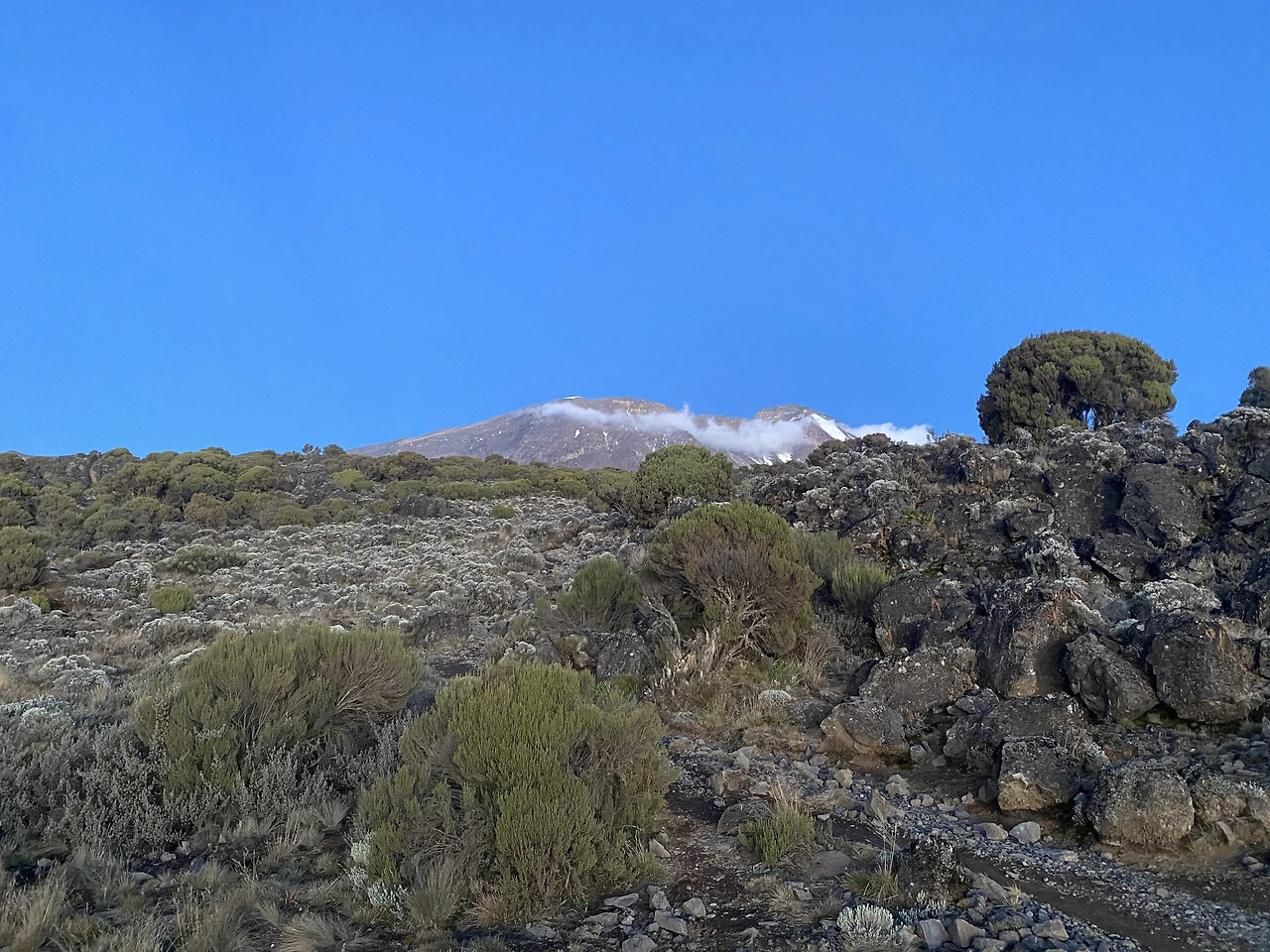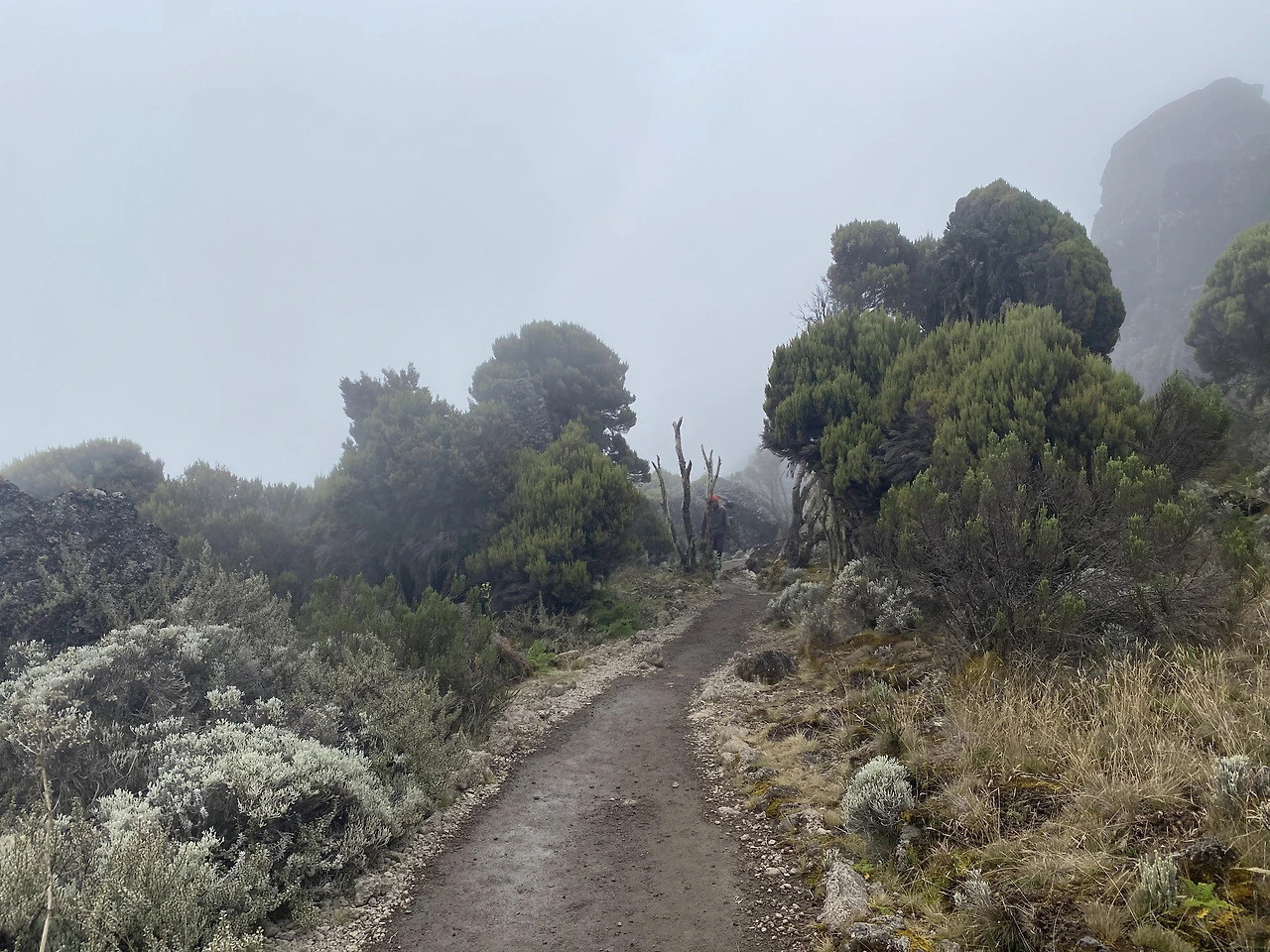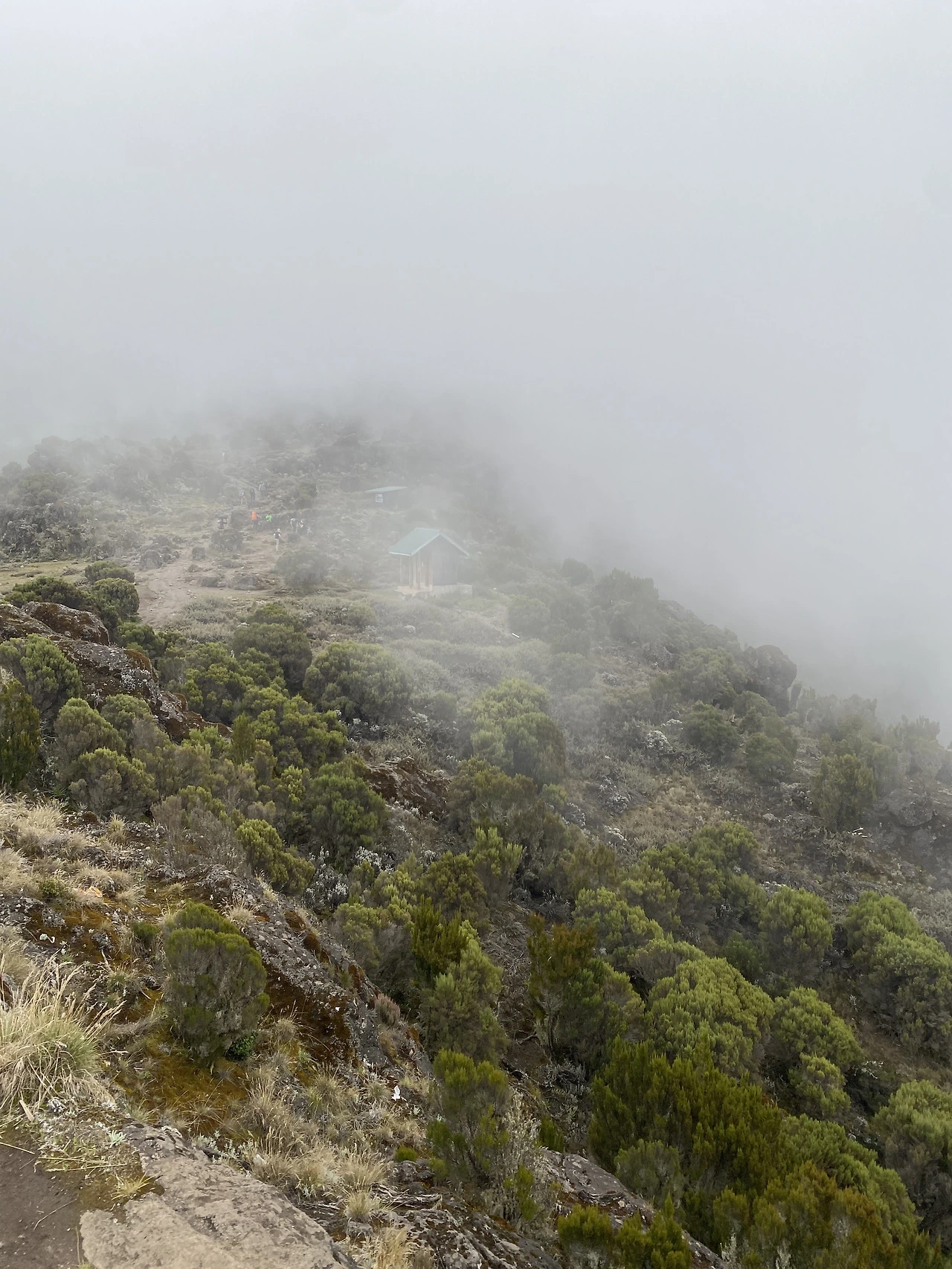 이것이 킬리만자로의 날씨라고 그랬다. 날씨가 순식간에 바뀌는 것처럼 내 컨디션도 순식간에 바뀐다. 컨디션이 괜찮을 때는 등반 중 데이빗과 이런저런 이야기를 많이 하는데, 컨디션이 저조할 때는 우리 둘 다 아무 말하지 않고 천천히 앞으로 한발 한발 내딛기만 반복한다. 데이빗도 내 컨디션에 맞춰주며 속도 조절을 한다. 폴레 폴레(천천히 천천히). 말을 하지 않는 건 최대한 에너지를 낭비하지 않으려는 거다. 날씨가 갑자기 변하며 추위가 몰려온다. 따뜻한 옷을 꺼내 입고 숨을 깊이 들어마시고 내쉬기를 반복한다.