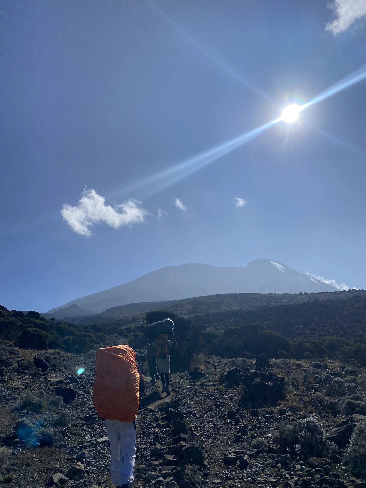 8시 30분에 데이빗과 나는 쉬라 케이브 캠프를 떠났다. 킬리만자로 정상이 햇빛 쨍 한 사이 잠시 얼굴을 내민다.