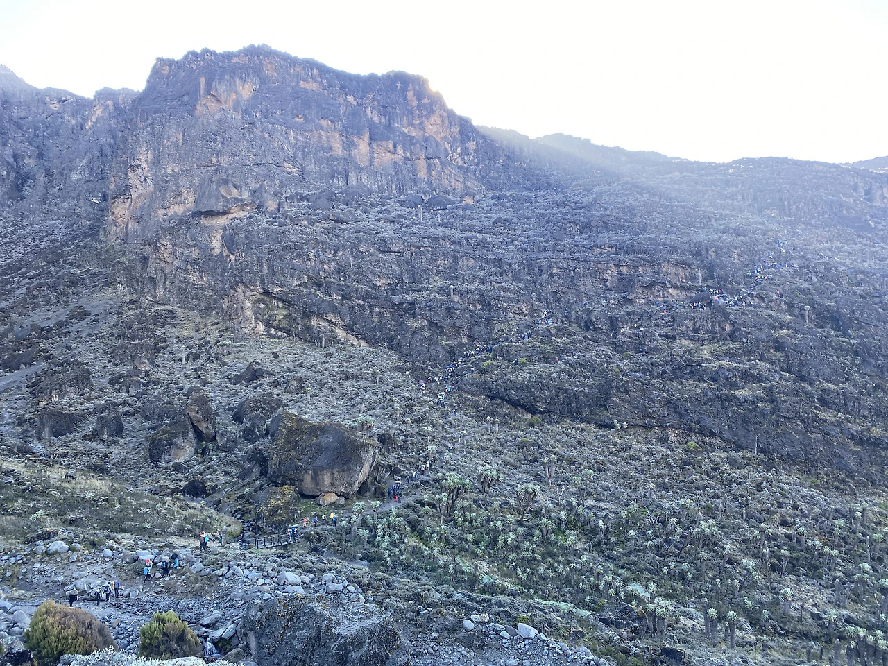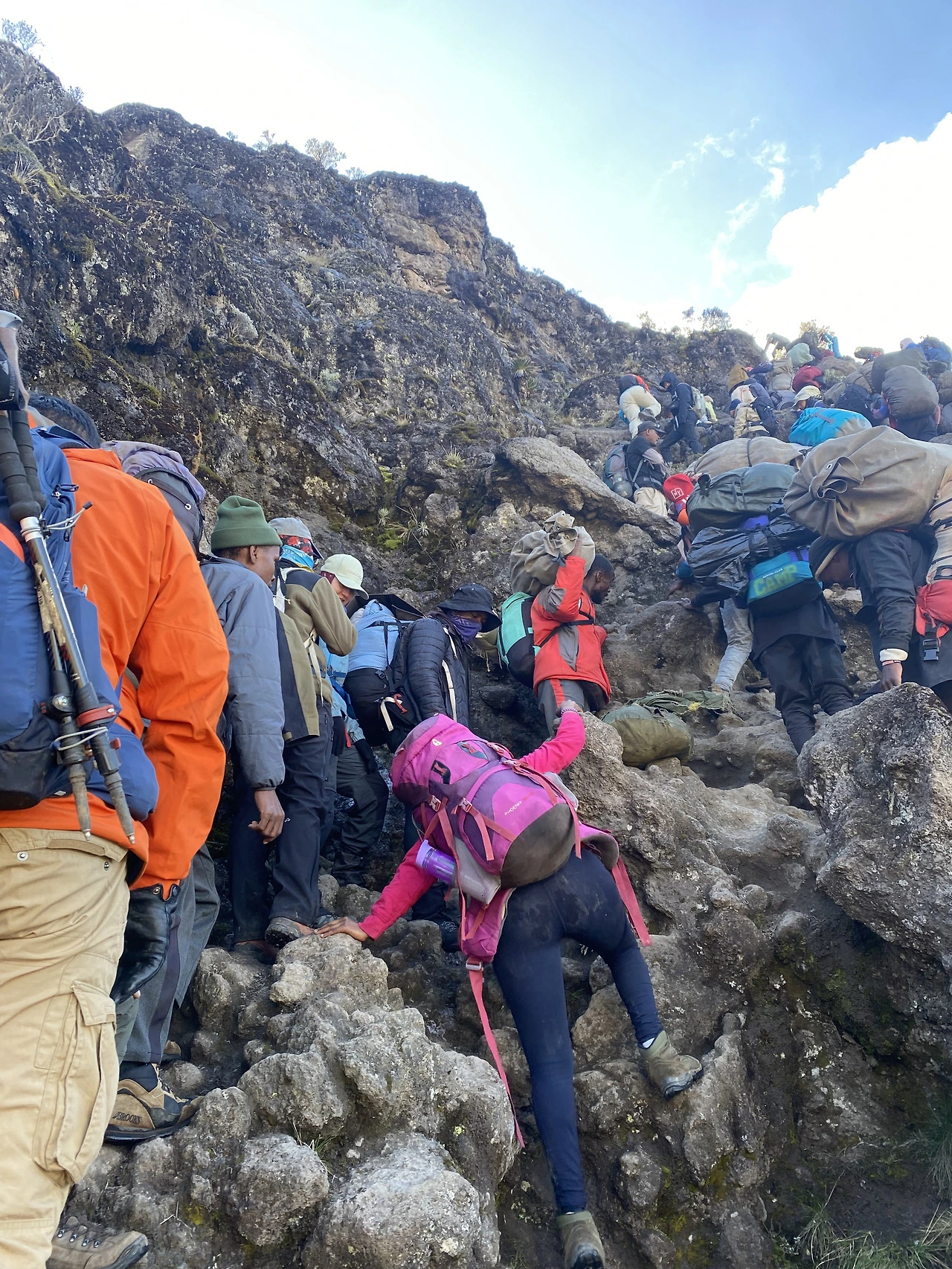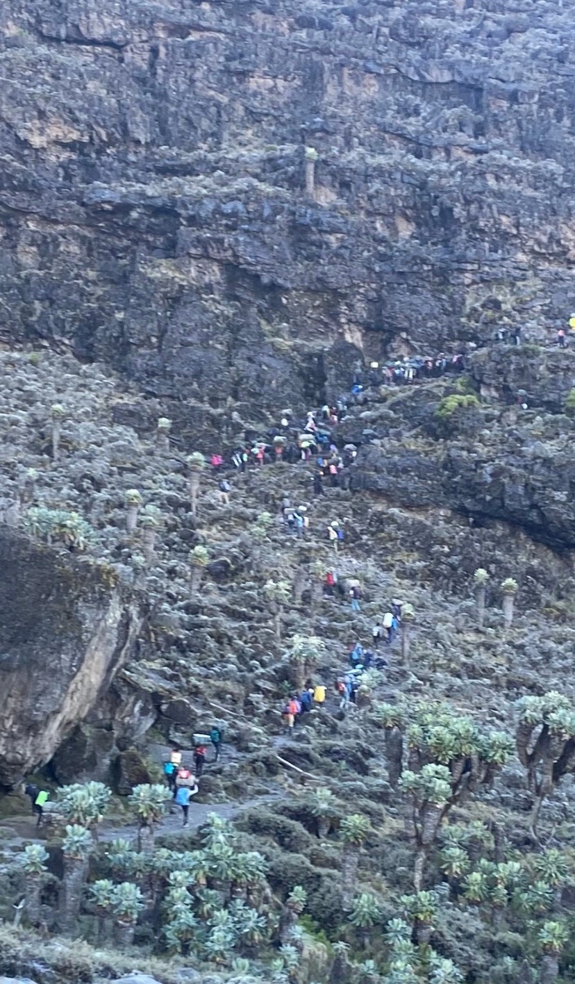 나 혼자서 킬리만자로를 간다고 했을 때, 주위에서 하는 걱정이 여자 혼자서 포터들이랑 그 깊은 산에 가면 위험하지 않냐는 거다. 사진에서 보다시피 그런 걱정은 할 필요가 없는 게 킬리만자로는 워낙 유명한 산이다 보니 일 년 내내 전 세계에서 사람들이 몰려온다. 나 혼자서 시작한 등반이지만 등반 내내 혼자 걷는 일은 절대 없다. 오히려 혼자서 걷는 기회가 생긴다면 이 유명한 킬리만자로를 전세 낸 거 같은 행운이다.