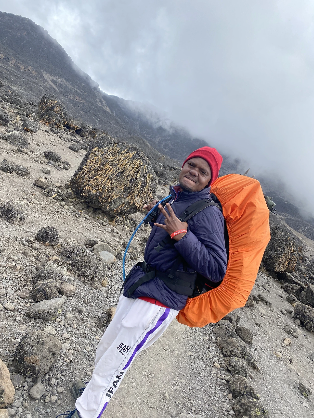 데이빗은 나와 함께 산행을 하며 나에게 길을 안내하고 내가 킬리만자로에 대한 질문, 식물에 대한 질문 등등 온갖 질문을 하면 다 자세히 알려준다. 등반 내내 나의 친구이자 가이드이다. 내가 가장 많이 한 질문은 이거다. “여기 고도 몇이야?” “얼마나 더 가야 돼?”