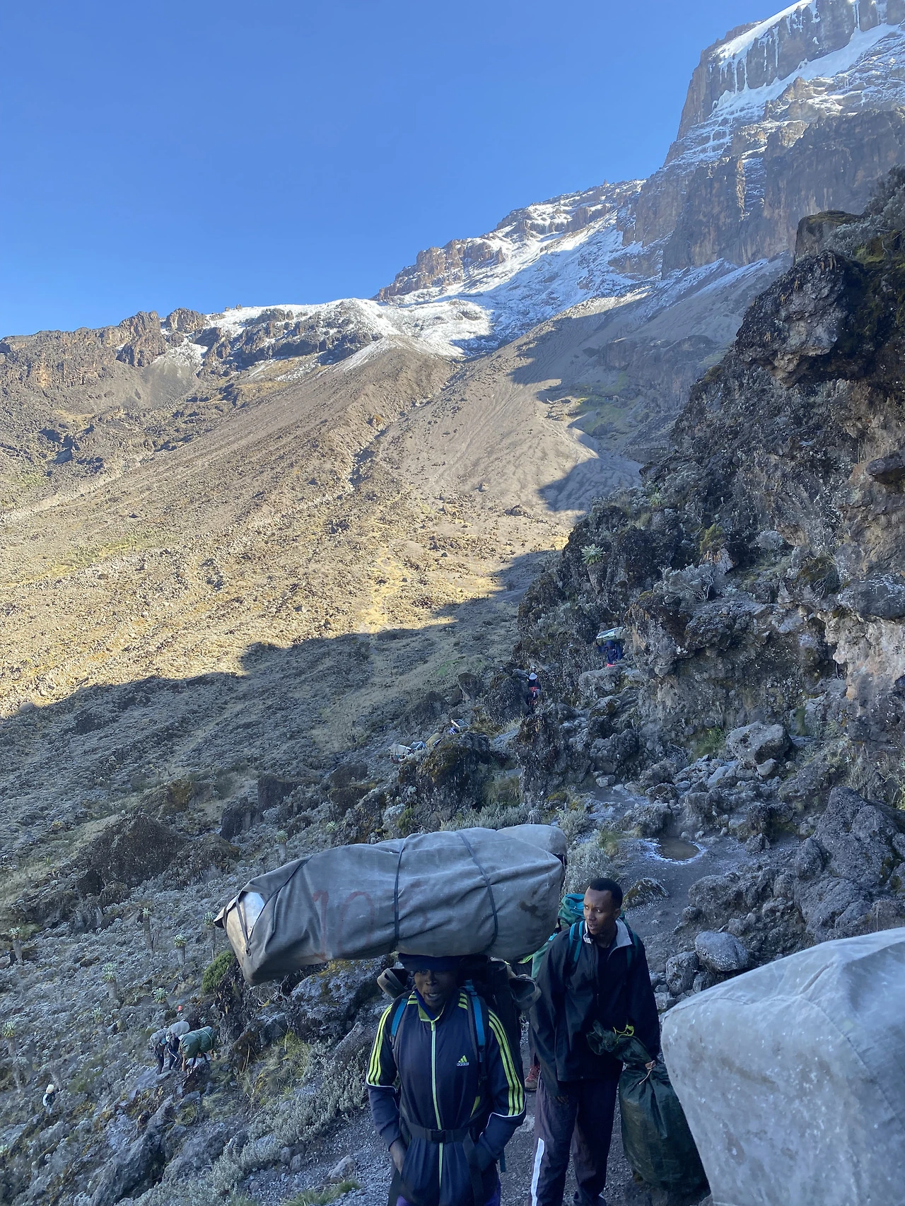 벽을 넘고 나니 이렇게 시야가 확 트였다. 그와 함께 날씨도 순식간에 바뀌었다. 며칠씩 등반을 하다 보니 나와 겹치는 등반팀들이 있었는데 운행 중간중간 그들을 만나면 반가웠다. 마차메 루트 7일 등반 중 한국팀은 한 팀도 보지 못했다. 한국인들은 산장에서 잘 수 있는 마랑구 루트로 많이 간다고 했다. -이 글을 읽으시는 한국분들, 마차메 루트로 가세요. 훨씬 볼거리가 많아 눈이 즐거울 거예요-