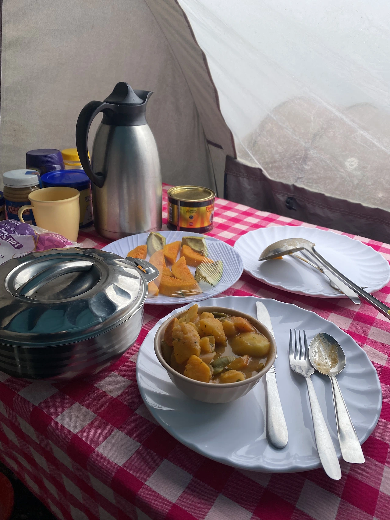 따뜻한 물로 밤사이 얼었던 몸을 따스히 녹이고 까슬한 빵을 억지로 욱여넣는다. 입맛이 없어도 생존을 위해 무조건 먹는다. 아침을 먹고 화장실을 들르고 오전 8시 20분에 데이빗과 카랑가 캠프를 출발했다.
