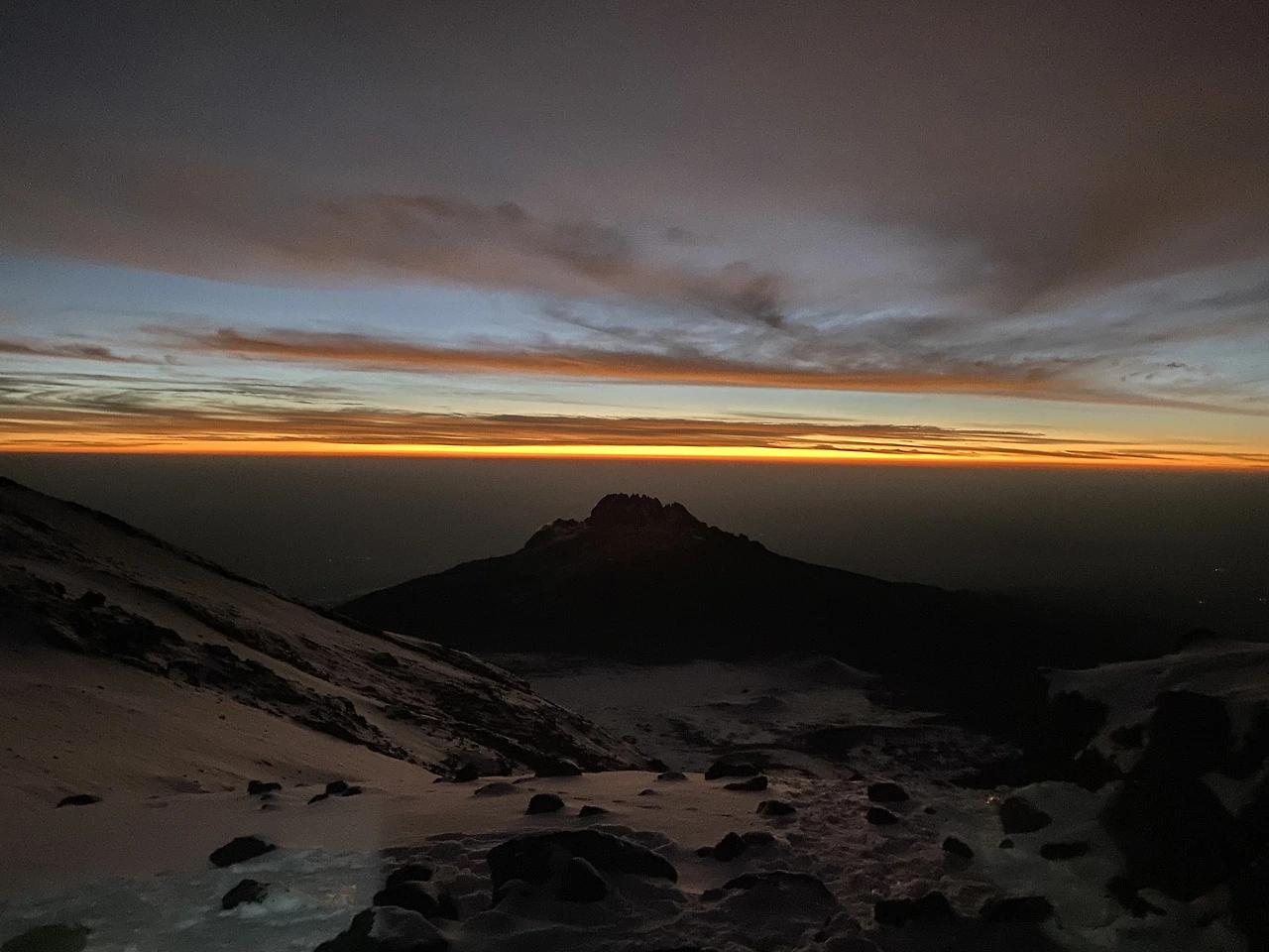 한발 한발 천천히 움직이다 보니 멀리서 동이 트기 시작했다. 바라푸 캠프를 출발한 지 6시간이 지나가고 있었고, 킬리만자로의 아침이 밝아오고 있다. 내 연약한 두 다리로 5000m가 넘는 이 높은 곳에서 떠오르는 해를 보는 것이 너무 비현실적이다.