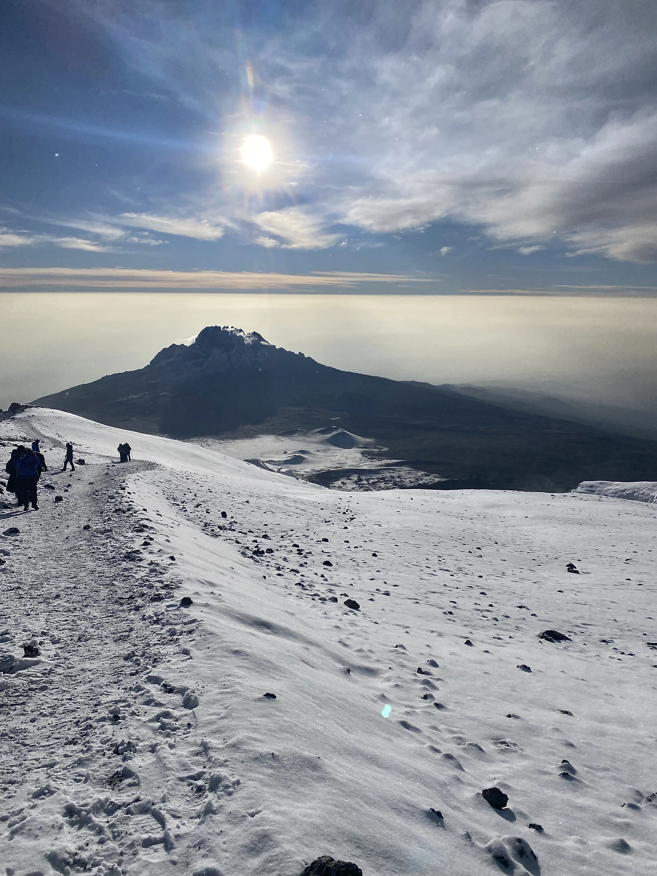 눈 쌓인 경사길을 올라가는데 장이 뒤틀리는 느낌이 계속 들었다. 숨을 깊이 쉬고 내뱉으면 장이 있는 그 부분이 더 결리고 불편했다. 이미 고도 5000m를 넘어가니 숨쉬기도 힘들었다. 천천히 한발 한발 떼며, 숨을 깊이깊이 마시고 내쉬기를 반복한다. 나는 지금 아프리카 대륙의 가장 높은 곳을 향해 가고 있다.
