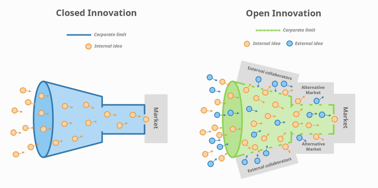 폐쇄적 혁신 vs 개방혁 혁신 (출처 : viima.com)