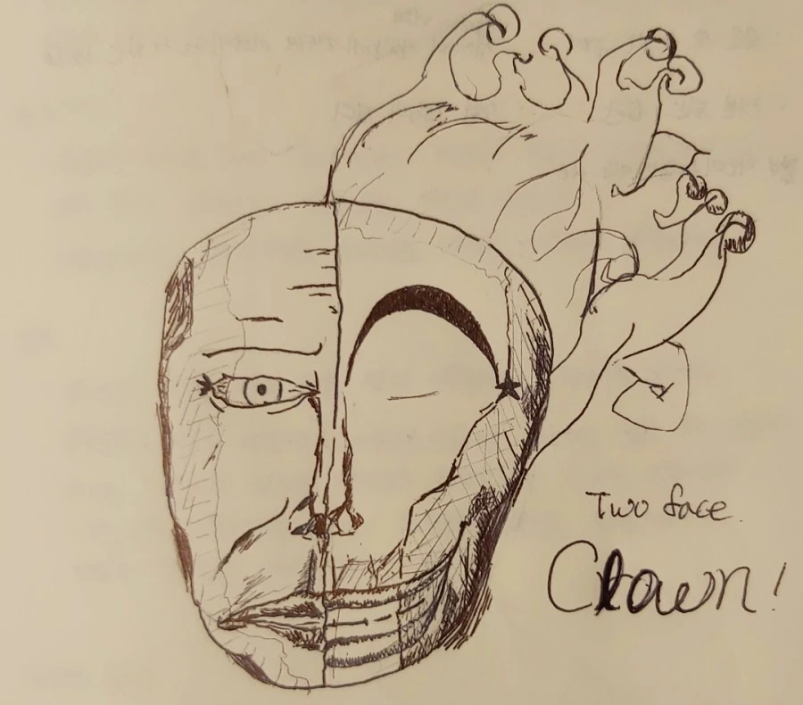 - 겉으로는 웃지만 가면 안쪽에는 부정적인 생각이 가득하다.