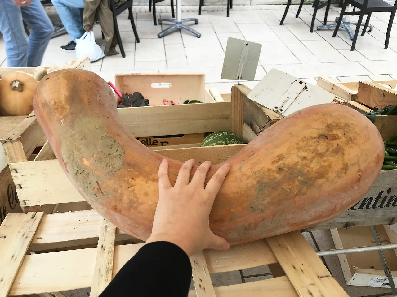엄청 크고 이상하게 생긴 호박. 흙이 덕지덕지 묻어 있지만 그대로 판다