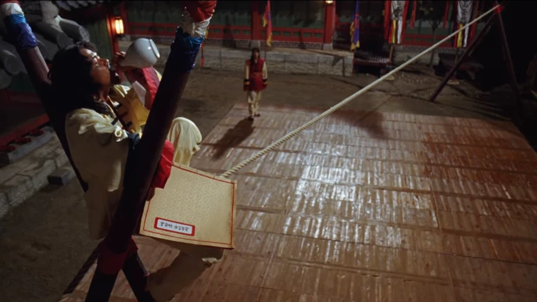광대들이 탈놀이에서 왕을 희화화하는 것 때문에 잡혀가 곤장을 맞는데 이때 장생이 임금이 웃으면 되는 거 아니냐면서 왕 앞에서 탈놀이를 하게 해달라 청하게 된다. 결국 기회를 얻게 되지만 너무 긴장하는 바람에 대사도 절고 순서도 뒤죽박죽이고 분위기가 싸하게 된다. 내가 보기에는 정말 망해서 아 이제 죽겠구나 이 생각을 했다. '이렇게 영화가 끝나나..?'라는 생각도 했다. 그런데 정말 뜬금없이 왕이 웃었다. 물론 웃을 수 있지만 아직도 웃음이 터진 포인트를 모르겠다.