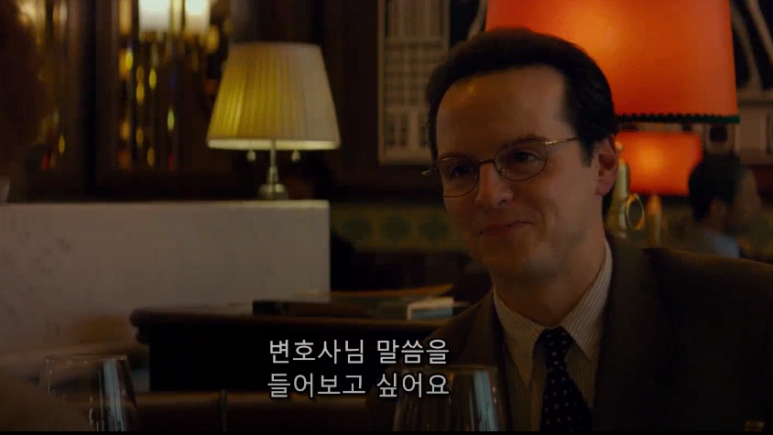 우선 수업 준비 때문에 영화를 보게 된 것이라 아무 정보 없이 영화를 보게 되었는데 배우진들이 익숙해서 당황스러웠다. 가장 당황스럽고 친숙했던 배우분은 BBC 셜록 시리즈에서 모리아티 역을 맡으신 앤드류 스콧 배우님이 변호사 앤서니로 나왔다. 더군다나 마이크로프트역의 마크 게티스 배우님도 나와서 놀람 반 반가움 반이었다.