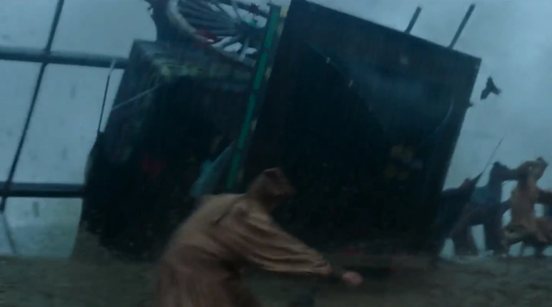 그리고 안여가 부러졌다는 것이 우지끈하면서 기둥에 금이 가서 ‘어이쿠 위험할뻔했지뭐야^^’이런 느낌인줄 알았는데 정말 말그대로 안여가 통째로 부러저서 왕의 감정을 화면에 담는 것이 아니라 사람을 하나의 더미처럼 큰 배경에 중점을 두고 와장창창 와르르 넘어지는 것으로 연출이 되어서 매우 당황스러웠다. 그 다음에 신하들이 죽여주시옵소서 라면서 비오는 야외에서 울부짓는데 정말 복잡미묘했다.