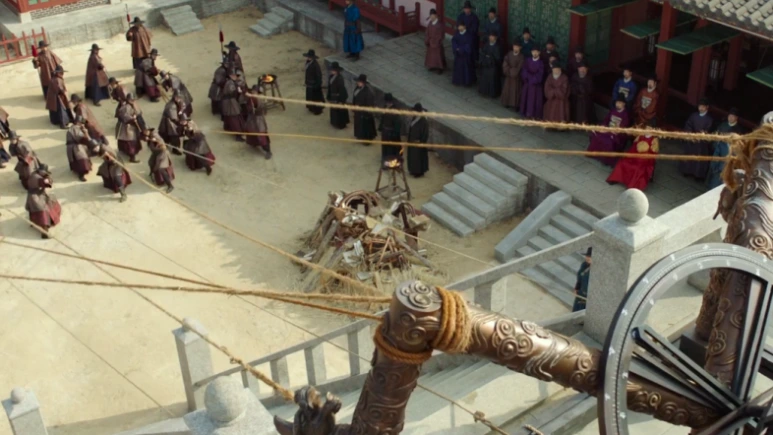 영화 전반적으로 잔잔하다 느꼈는데 생각보다 극적인 장면들이 많아서 영화를 보다가 가끔씩 놀랐다. 명나라 사신이 천문 관측기구를 없애라는 말을 하고 난 후 나는 그냥 울면서 분리하고 뚝딱뚝딱 때서 치울 줄 알았는데 굳이 많은 사람들을 불러서 밑에서 밧줄을 묶어서 우당탕탕 먼지 다 날리게 끌어내리는 장면이 정말 비효율적이라는 생각과 생각보다 소리도 크고 화면이 격해서 놀랐다.