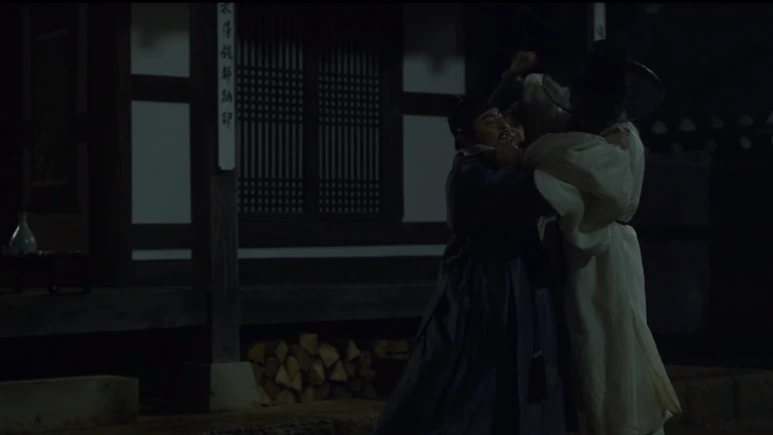 팽현이 수양대군에게 밀고를 한 것을 내경이 알았을 때 박진감 넘치게 액션신처럼 싸우는 것이 아니라 하찮게 고정된 프레임 안에서 투닥투닥 싸우는 게 더욱 현실감 있고 진정성 있게 느껴졌다. 관상이라는 영화 자체가 웃음거리는 있지만 영화 자체가 우습지 않는 많은 생각이 들고 깊은 여운이 들게 하는 영화라는 것이 잘 스며들어있는 장면인 것 같아 개인적으로 기억에 많이 남는 장면이다.