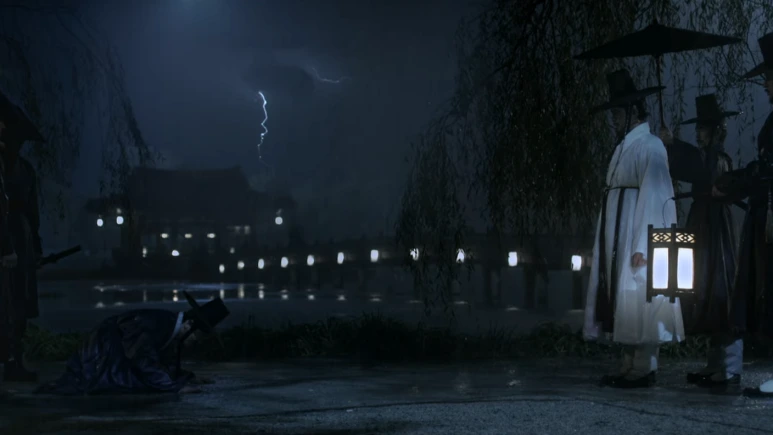 한명회가 김종서 대감의 소행으로 꾸며 진형의 눈을 멀게 하자, 김종서의 짓이라 생각한 팽현은 수양대군에게 김종서가 수양을 죽이려 한다는 것을 밀고한다. 이때 비가 추적추적 내리는 밤에 팽현은 검은 옷을 입고 엎드려 수양대군에게 빌고 있고 수양대군은 하얀 옷을 입고 서 있는 모습이 번개가 치면서 팽현의 형상, 윤곽이 드러나 둘의 대비가 확연하게 드러나면서 정말 구도가 완벽한 그림을 보는 듯한 느낌이 들었다.