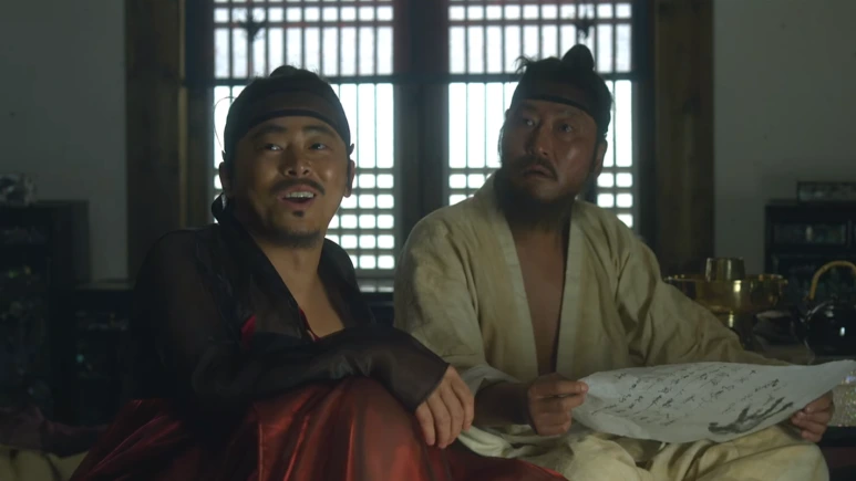 내경과 팽현이 한양에서 위기를 느끼고 난 후 원래 있던 곳으로 돌아가려던 중 어떤 사람이 둘을 잡는다. 그렇지만 둘은 이를 거절하고 가려는데 부르는 상대가 김종서 대감이라는 말을 듣고 다시 돌아오는 장면이 있다. 자주 나타나는 양상은 김종서 대감이라는 말을 듣고 주인공들의 얼굴을 풀샷을 잡으면서 동요하는 표정을 담아내면서 돌아오는 것과 같은 형식이 많이 보이는데 이 영화에서는 포커스가 둘을 잡았던 사람으로 잡히고 몇 초 있다가 그 포커스 그대로 둘이 배경처럼 흐릿하게 팔랑팔랑 뛰어와서 참신하다는 생각이 들었고 한복이라 그런지 품이 커서 몸짓이 더 오버스러워서 익살스러운 음악과 함께 더욱더 두 사람이 하찮고 귀여워 보였다.