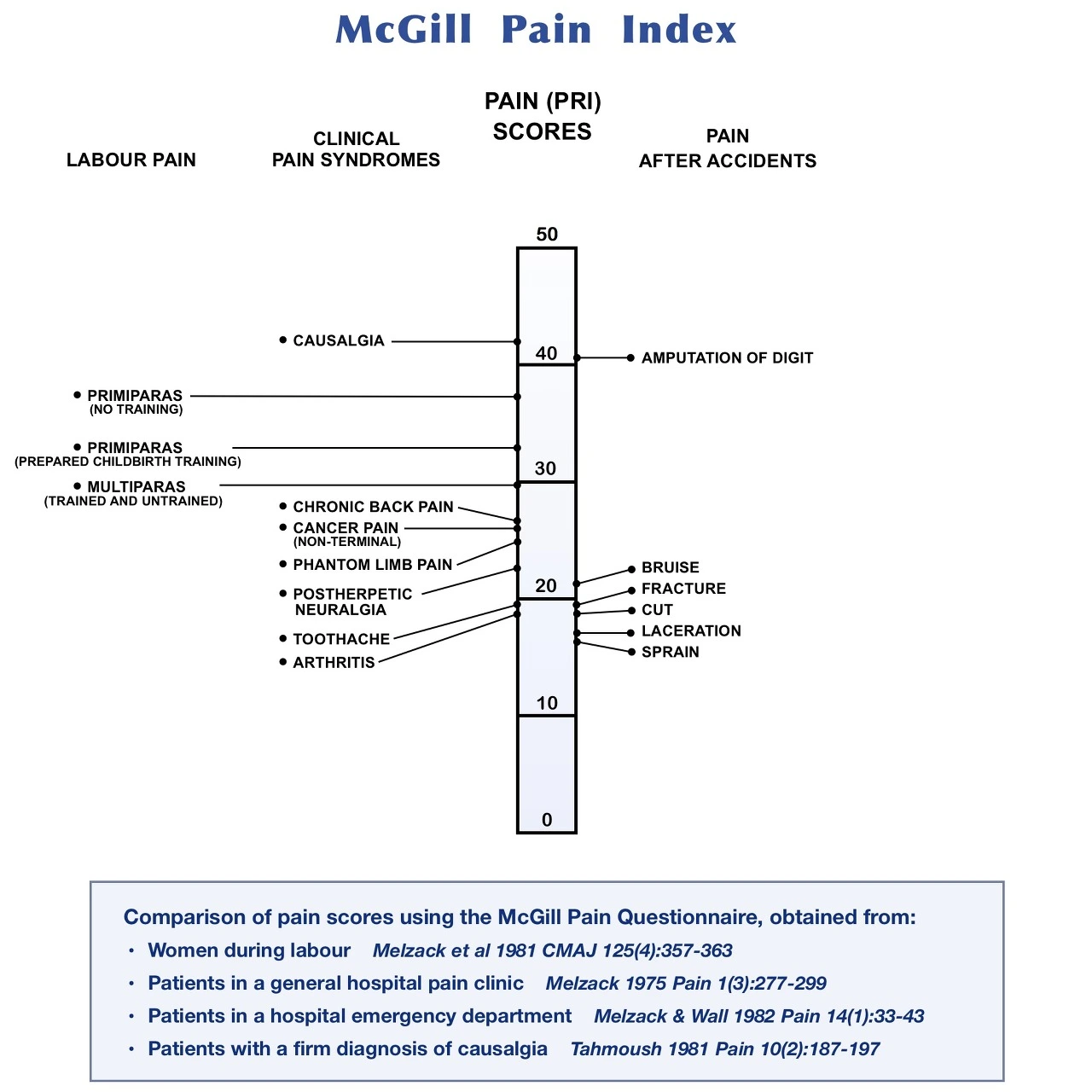 통증의 주관적 느낌을 수치화한 ‘맥길 척도(McGill Pain Index)’를 찾았지.