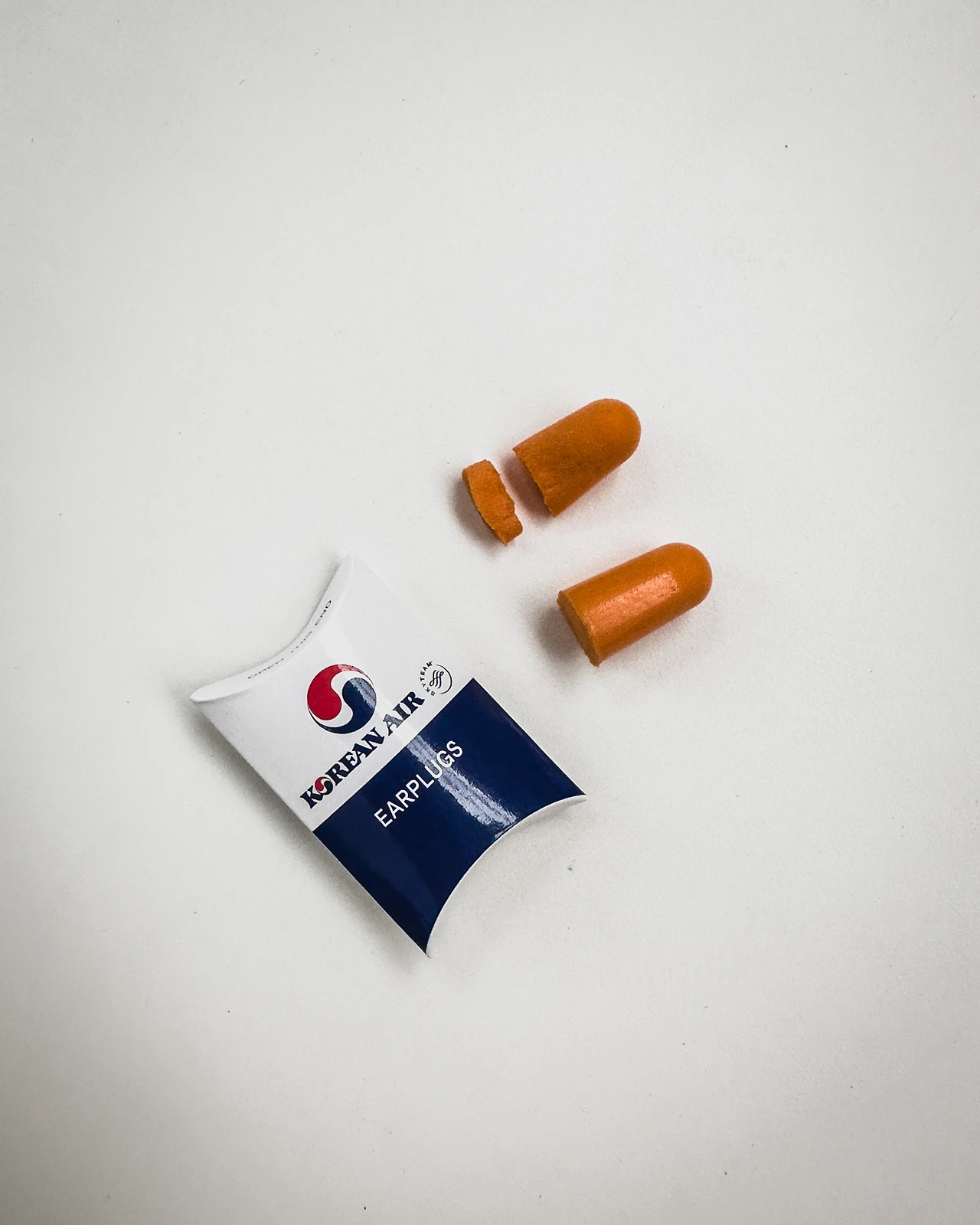 이때 프로 출장러인 내가 승무원을 부른다. ‘귀마개 주세요’ 대한항공은 귀마개(ear plug)를 제공한다. 비즈니스 클래스에는 기본이고, 일반석에서는 달라면 준다. 귀마개는 단일 사이즈다. 길다. 귀마개 뒷부분을 손으로 찢어서 길이를 줄인다. 손가락 끝으로 오물조물 오므린 다음, 귓구멍에 밀어 넣는다.