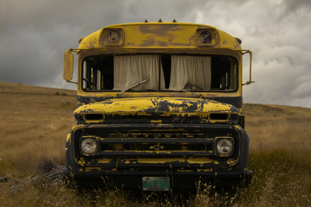 단지, 낡은 폐버스 한 대가 들판 한가운데 덩그러니 놓여 있었다.