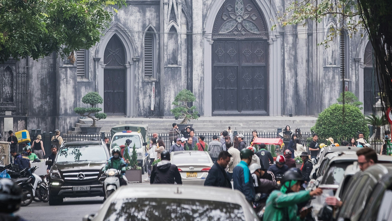 나는 가방에서 카메라를 꺼내 들고 성당 외벽을 배경으로 몇 장을 찍고 있었다